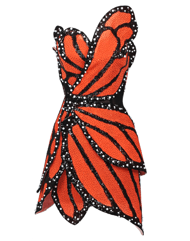 Make a statement this season with this embellished butterfly Baky Mini Dress. Featuring a bustier-style neckline, fitted waistline and above-knee length. Style yours with barely-there heels and dainty accessories.