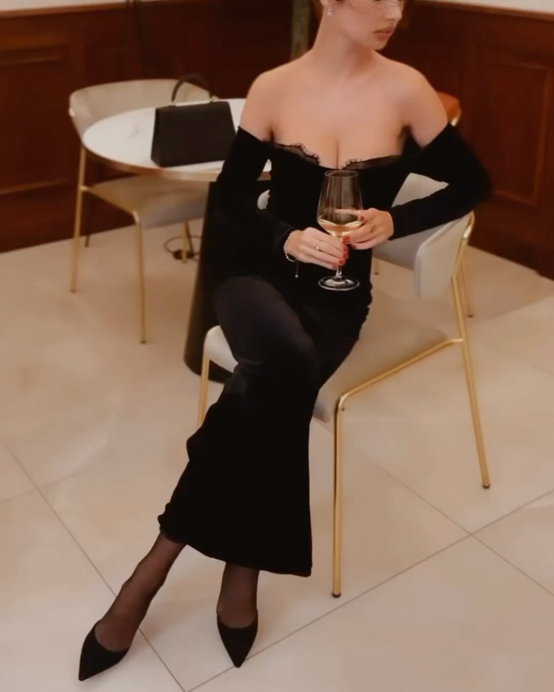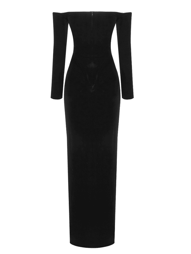 The Brandie Maxi Dress is a luxurious and sophisticated take on the classic off-the-shoulder look. Crafted in soft black velvet, the dress features delicate lace accents at the bust, creating a timeless and elegant silhouette. A perfect addition to your evening wardrobe, the Brandie will make you feel like a total knockout.