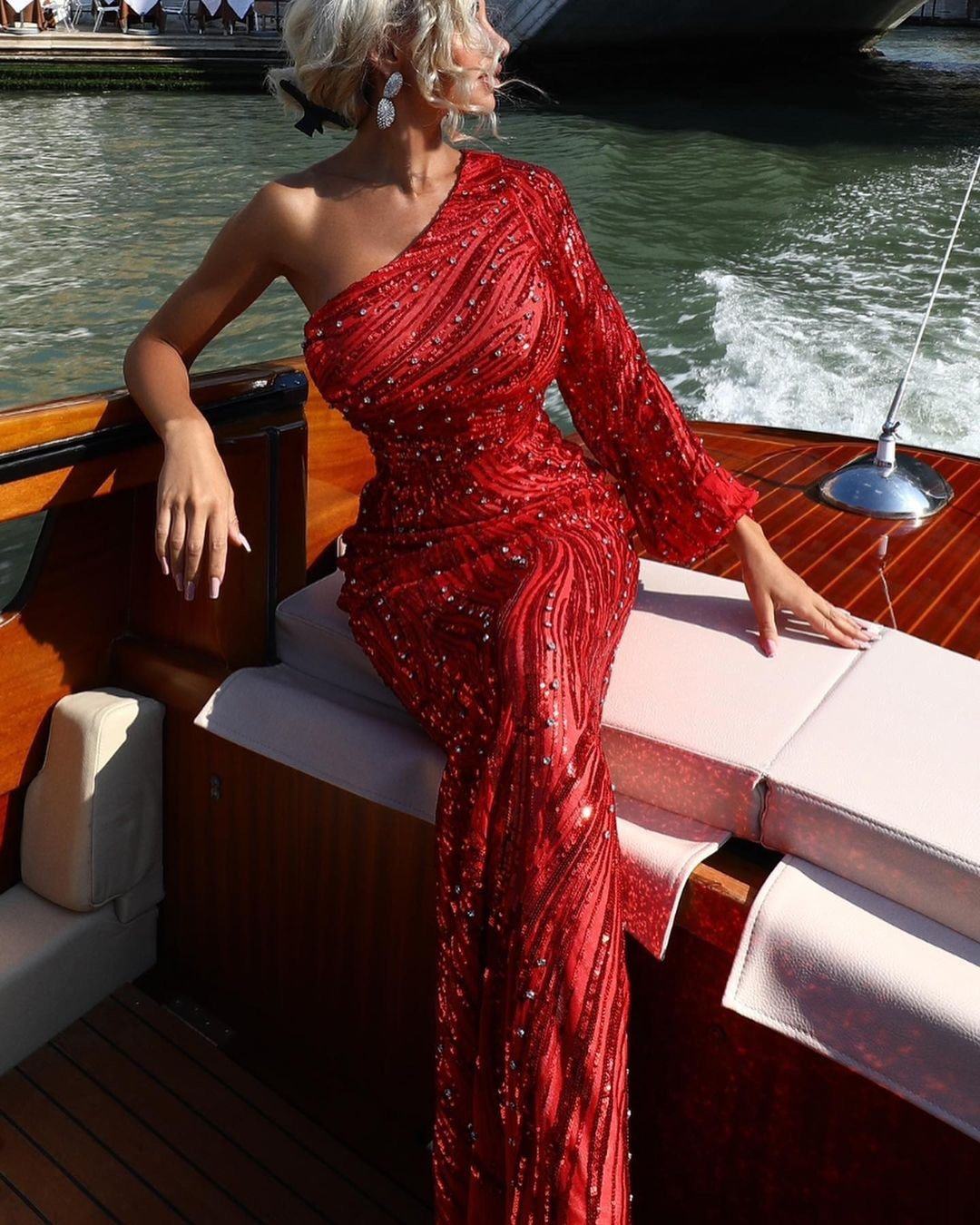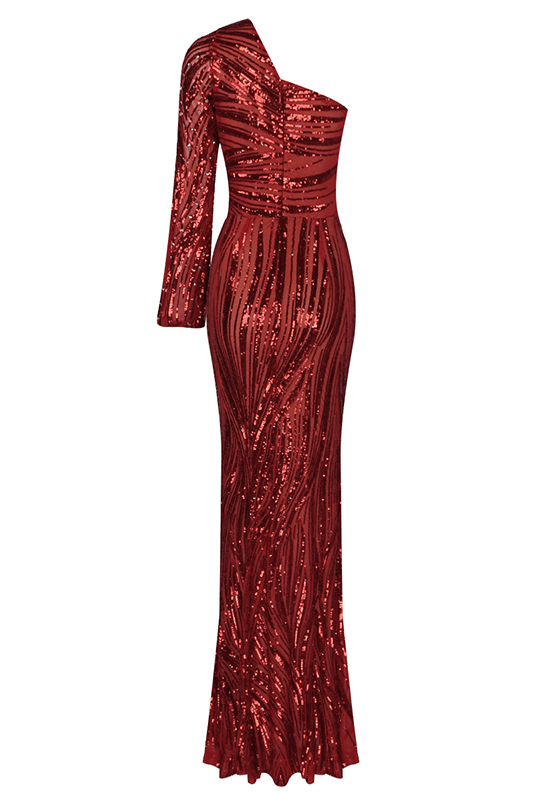 This maxi dress is perfect for those extra special occasions! Featuring a single sleeve design in a sequin material. Style with statement earrings and heels for an ultra glam look!