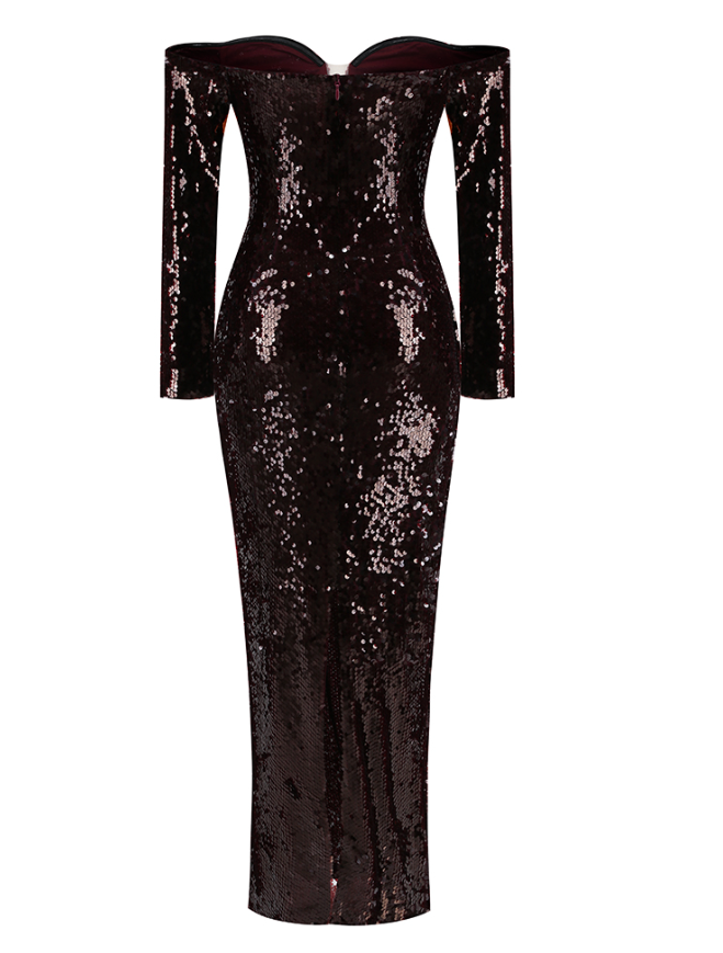 Indulge in ultimate luxury with our Carmen Maxi Dress. This exquisite brown sequin dress features an alluring off-the-shoulder design and long sleeves. Command attention and turn heads at any event with this elegant and sophisticated piece. Elevate your wardrobe with this exclusive and timeless dress.