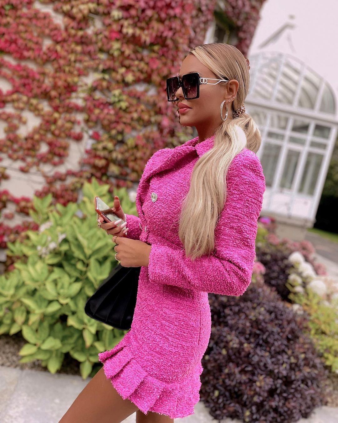 Get ready to look super classy and chic with our Cassie two piece set! Featuring a cropped blazer and skirt with in a beautiful pink shade. Style with heels and a mini bag for a super chic look!