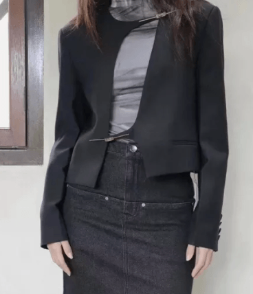 Get ready to be the center of attention with our Clain jacket! Featuring an open back and chest cutout. Style with leather pants and your favorite pumps for a sexy look!