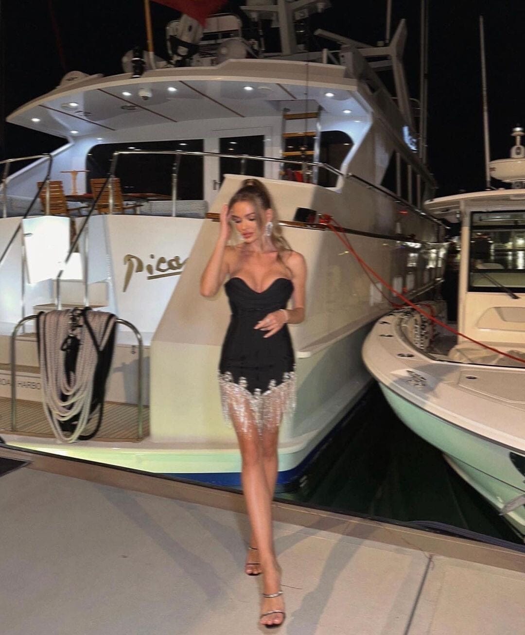 Get ready to wow in our Claude Dress! This gorgeous show-stopping mini dress features sweetheart neckline with exposed shoulders and showcases stand-out embellishments.