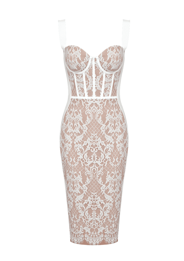 Live your best fashion dreams with the Dacia Midi Dress. Delicately crafted from white lace, it boasts a bustier-style cut designed to flatter your figure. Its elegant cut ensures you make an unforgettable entrance while its exquisite detailing adds a touch of luxe. Look divine, feel fabulous.