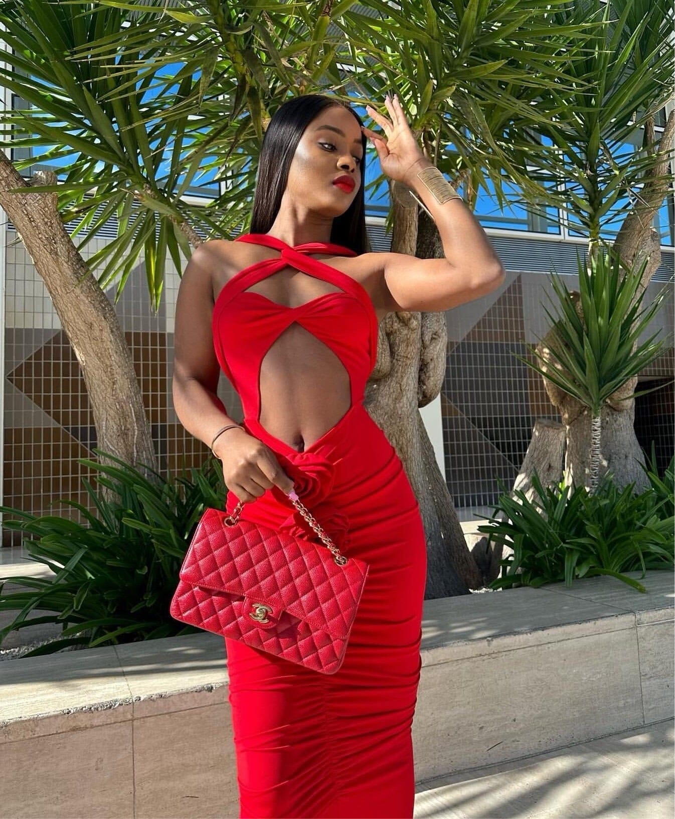 Add some fiercely feminine vibes to your weekend plans with this Deavra maxi dress. Featuring crisscross straps, cut out detailing, floral appliqué and ruching throughout. Style with strappy heels and minimal accessories to complete the look everyone is obsessed with.