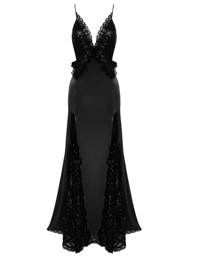 Experience a unique blend of classic femininity and contemporary luxury in our Dian Black Maxi Dress. This exquisite maxi dress is crafted of timelessly elegant black lace and satin, with a deep neckline and full-length skirt. Boasting an exquisite design, the Dian is sure to make a statement.