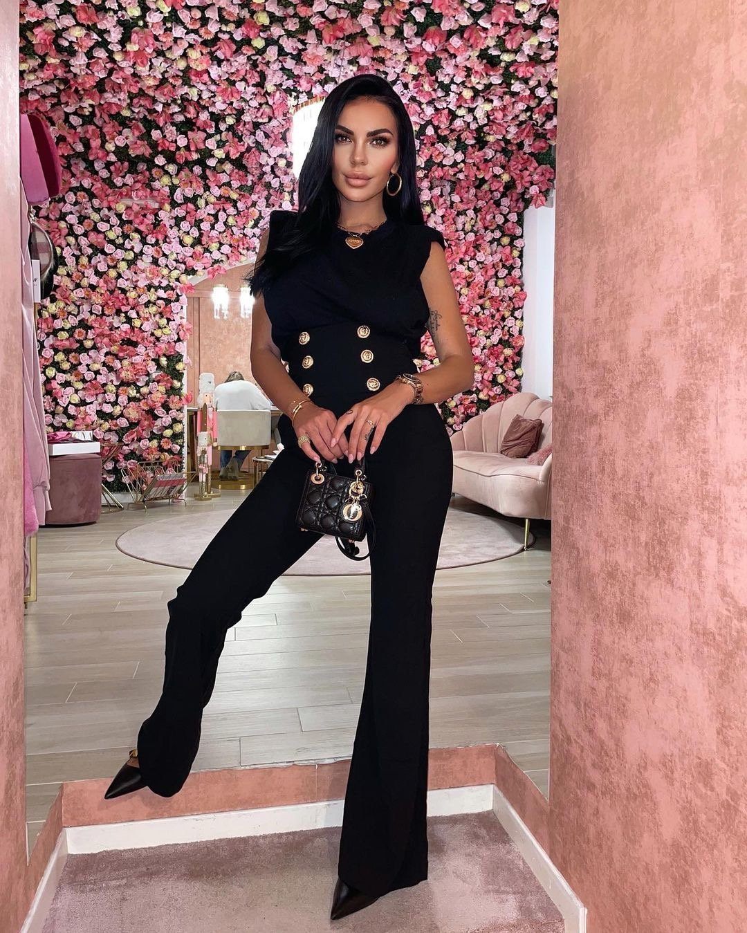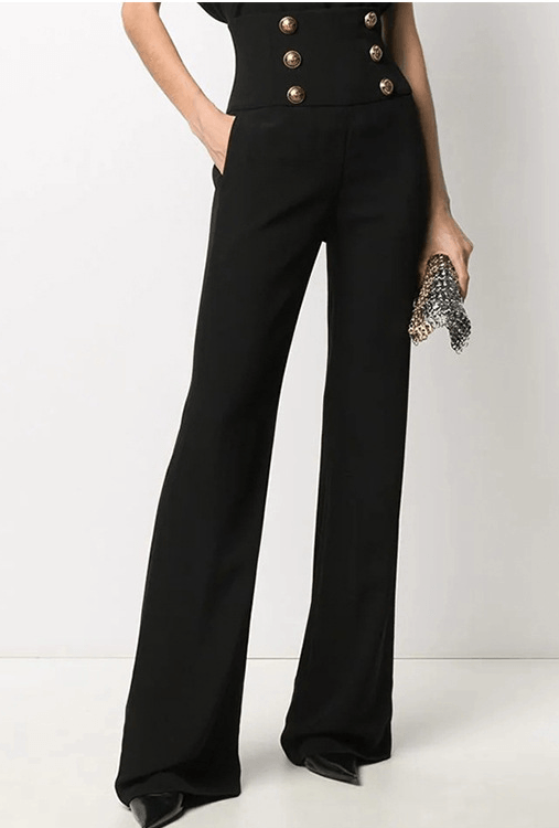 Our Dima pants are a must-have in your wardrobe! Featuring a wide leg with gold button detail. Style with your favourite top for a chic look!