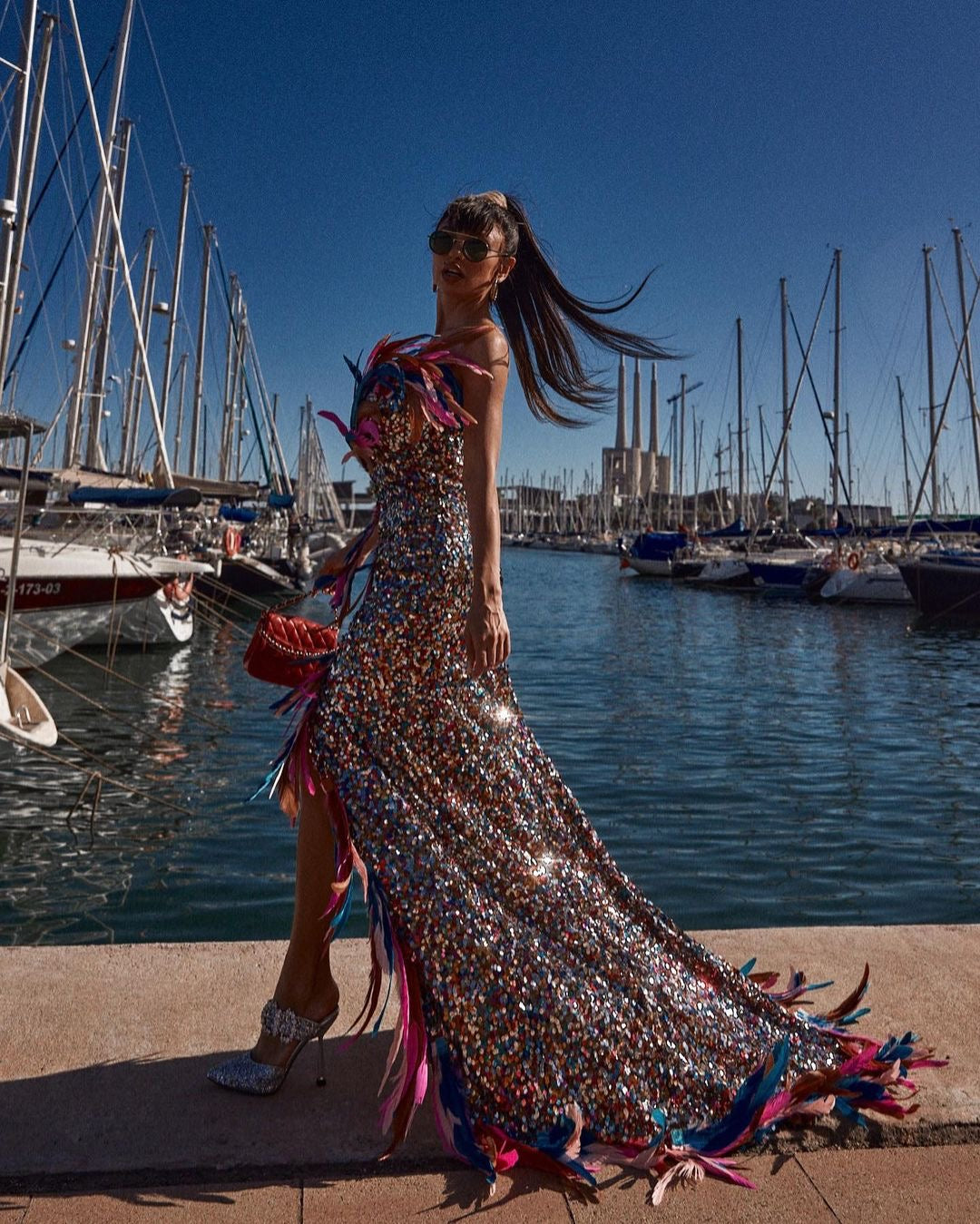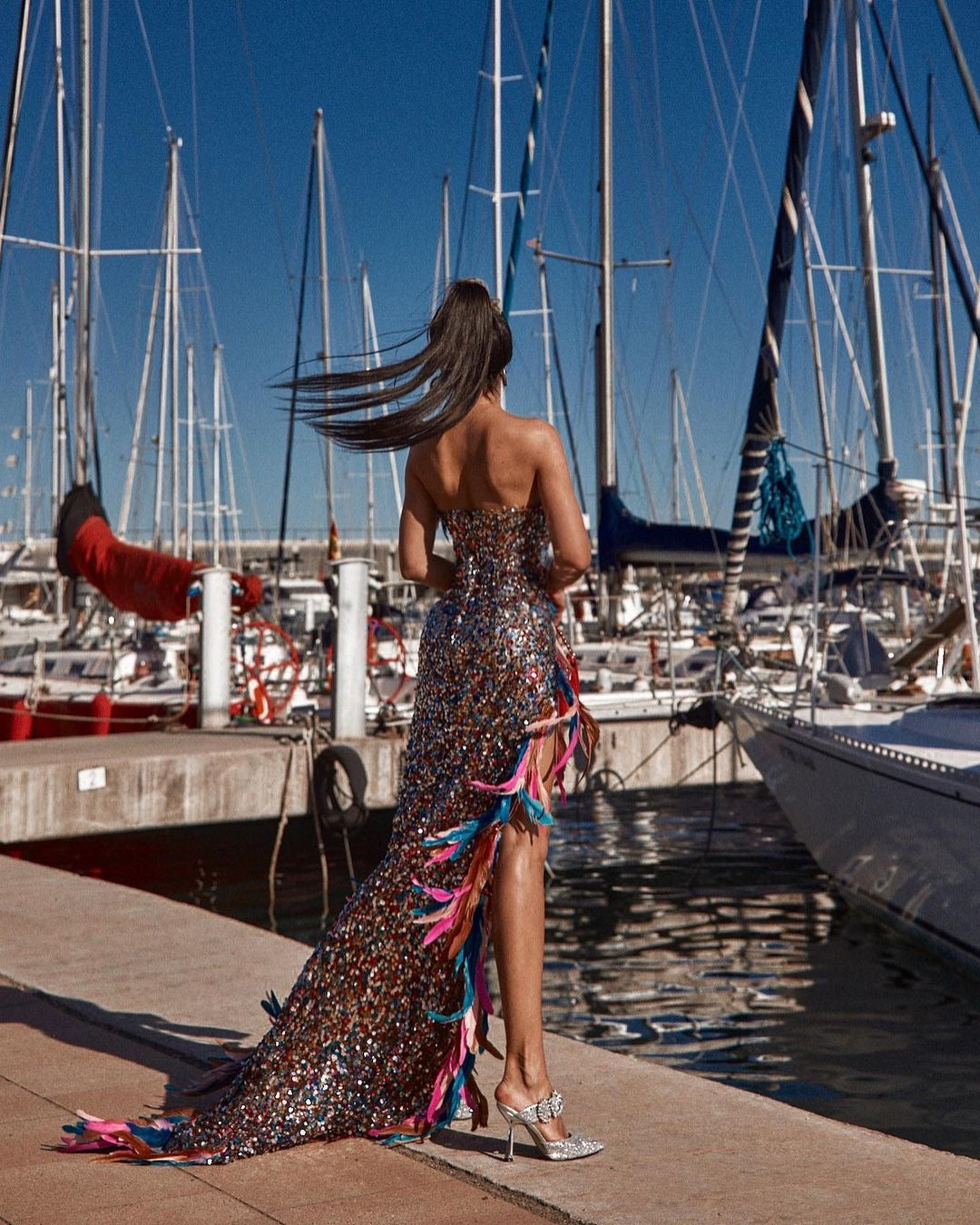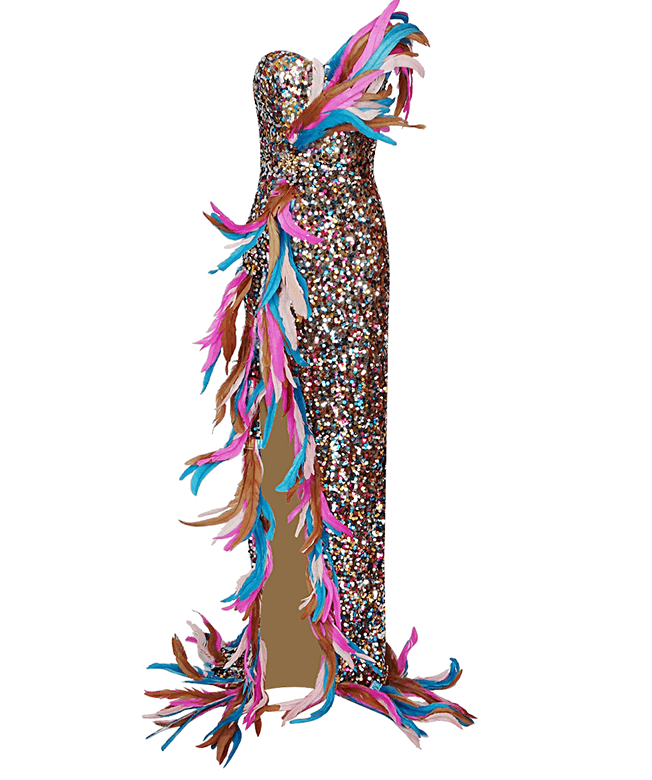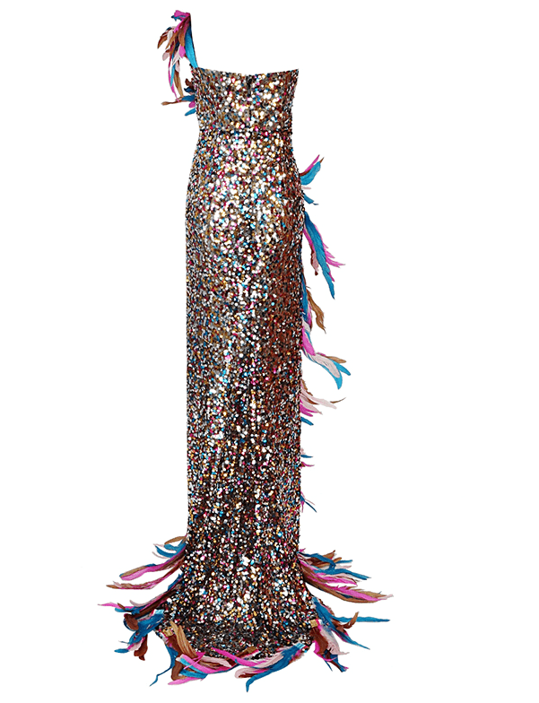 This maxi dress is perfect for those extra special occasions! Featuring a deep neckline in a sequin material and feather detail. Style with statement earrings and heels for an ultra glam look!