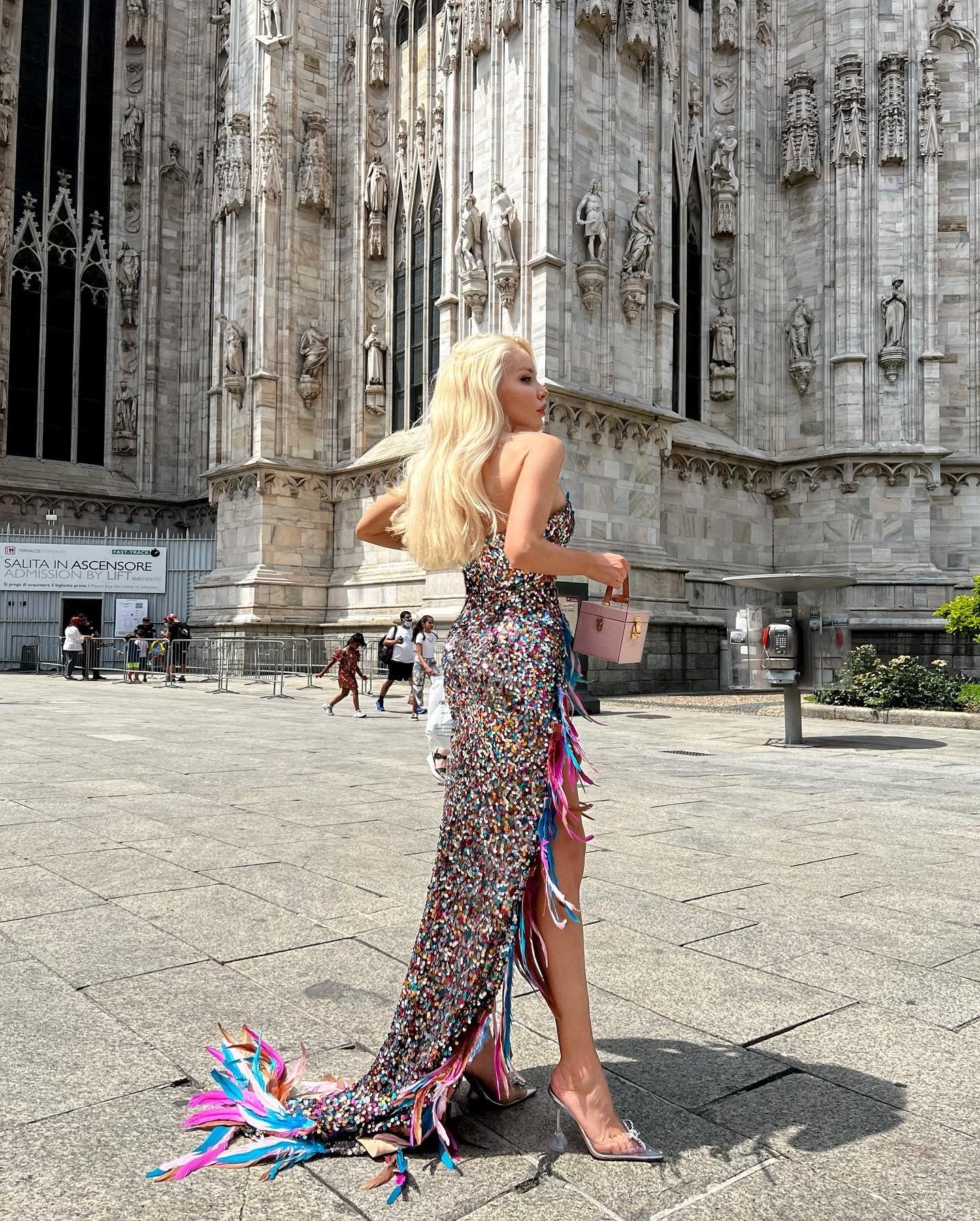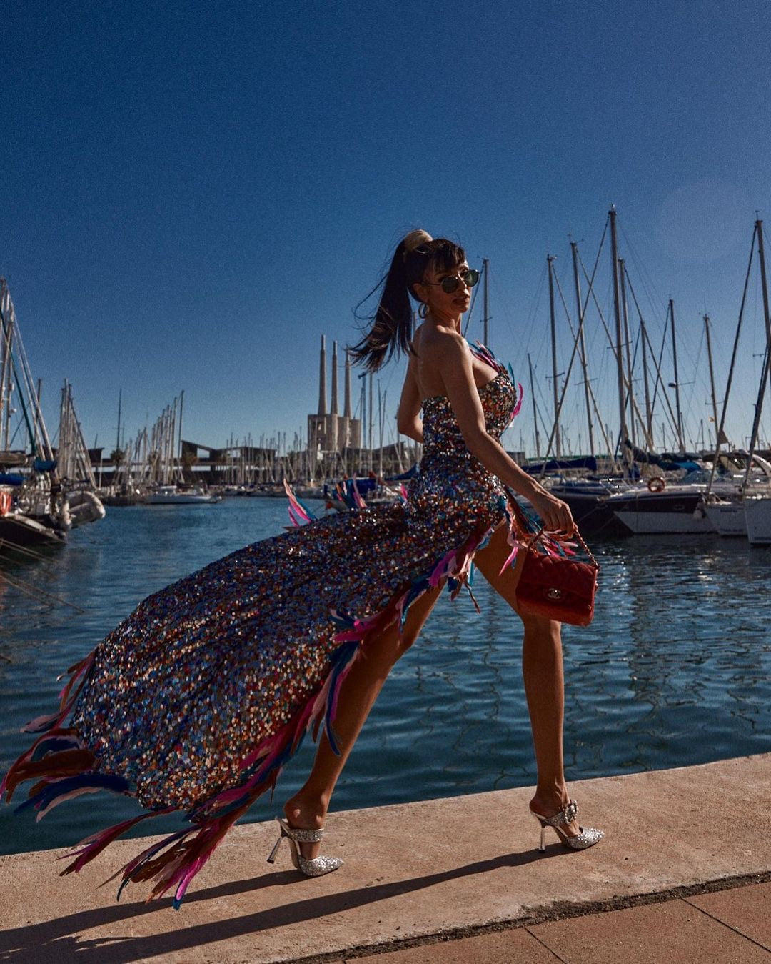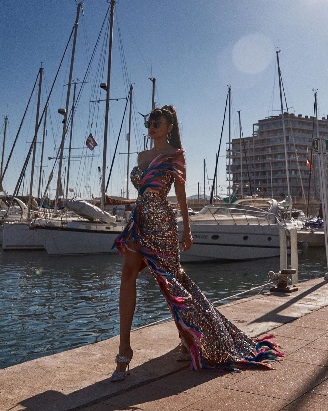 This maxi dress is perfect for those extra special occasions! Featuring a deep neckline in a sequin material and feather detail. Style with statement earrings and heels for an ultra glam look!