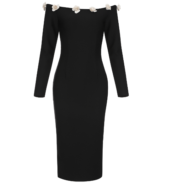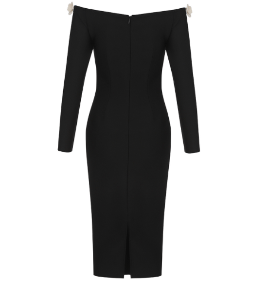 Keep your look super chic with out Elias midi dress. Featuring an off the shoulder design in a figure hugging design. Style with statement earrings and heels and get ready to have all eyes on you!