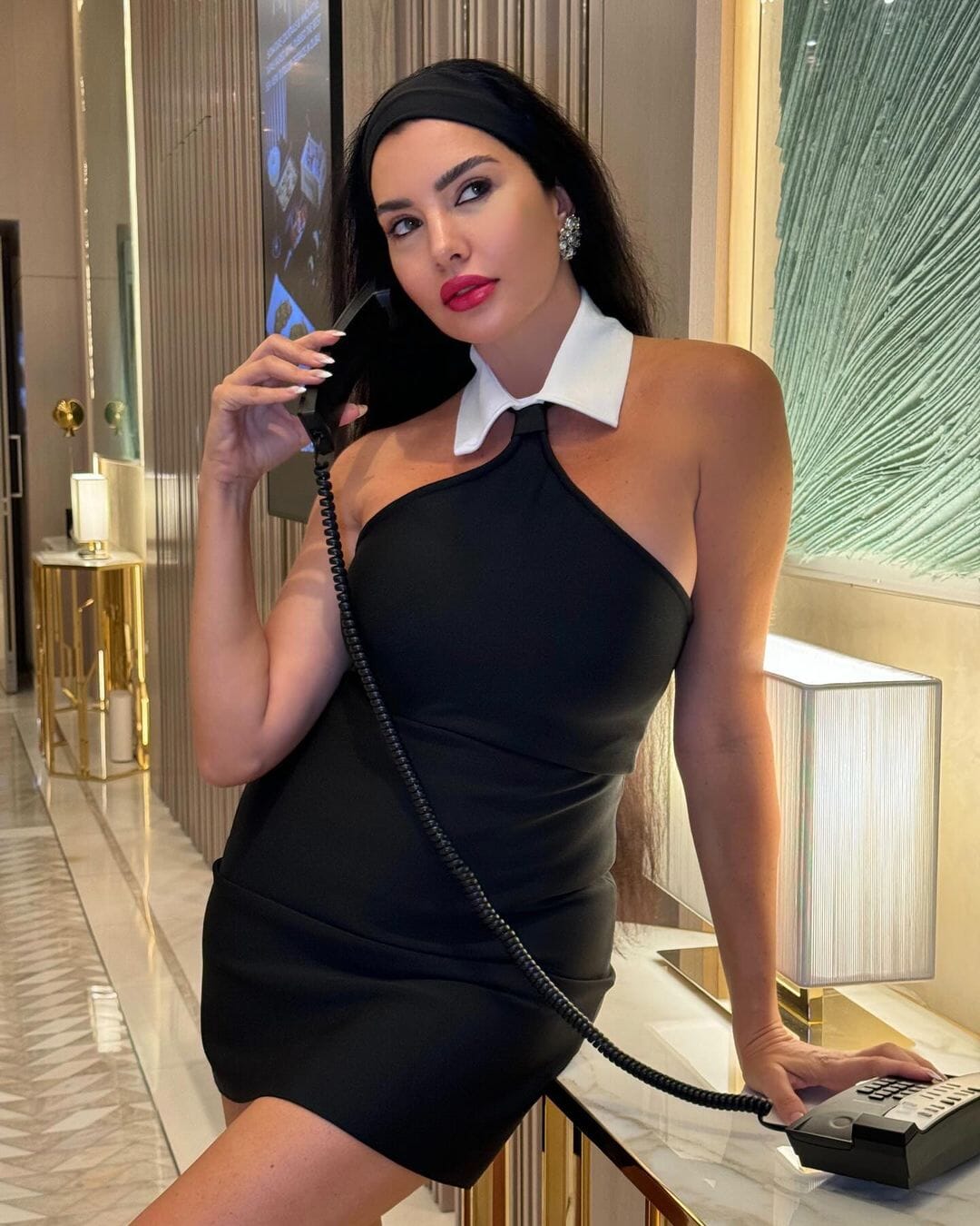 Indulge in sophistication and luxury with our Geny Mini Dress. This black mini dress features a sleek halter neckline and chic collar detail on the neck. Perfect for any occasion, embrace the elegance and exclusivity of this must-have piece.