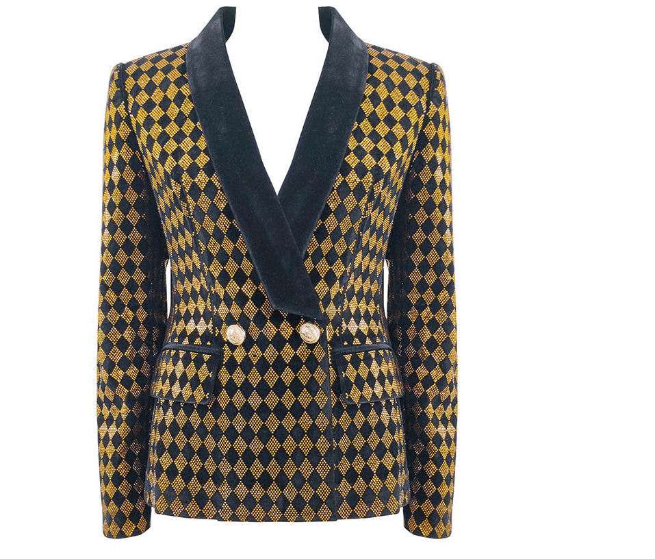 Get ready to stand out in our Hemia jacket. Featuring a shimmer material with golden buttons.