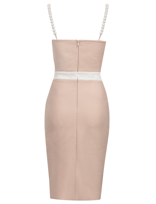 Get ready to stand out in our Indri midi dress! Featuring a sweetheart neckline with pearl straps in a body-hugging design. Style with heels and your favourite accessories for a chic and sexy look!