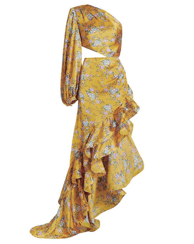 The Ismaris Ruffle dress features a gorgeous floral print. It has a waist cutout along with a single sleeve. This dress is guaranteed to make you look sexy while keeping you comfortable. Style with strappy heels and a mini bag.