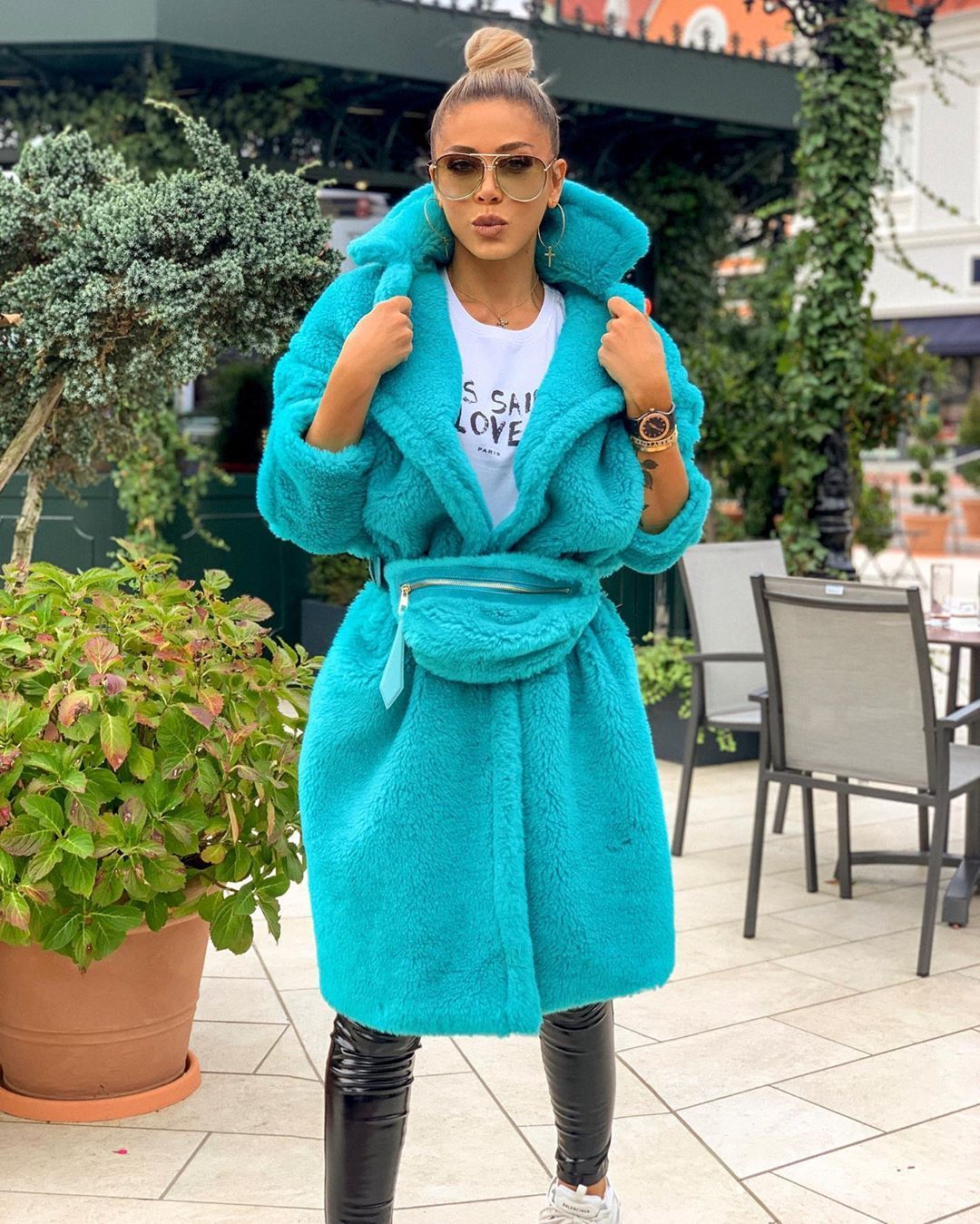 The Jasmine Teddy coat is a must have for the winter months! This mid-length coat is guaranteed to keep you warm while looking trendy! The coat comes with faux fur belt bag for a chic look! Style with jeans and sneakers and be ready to stand out in our Jasmine Turquoise Teddy coat!
