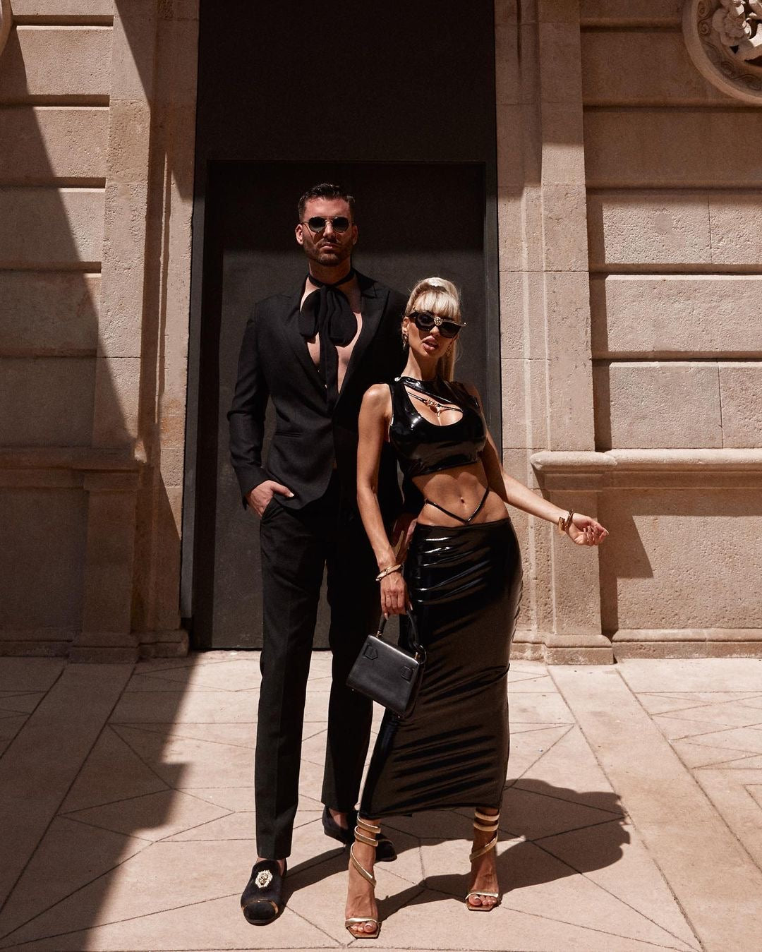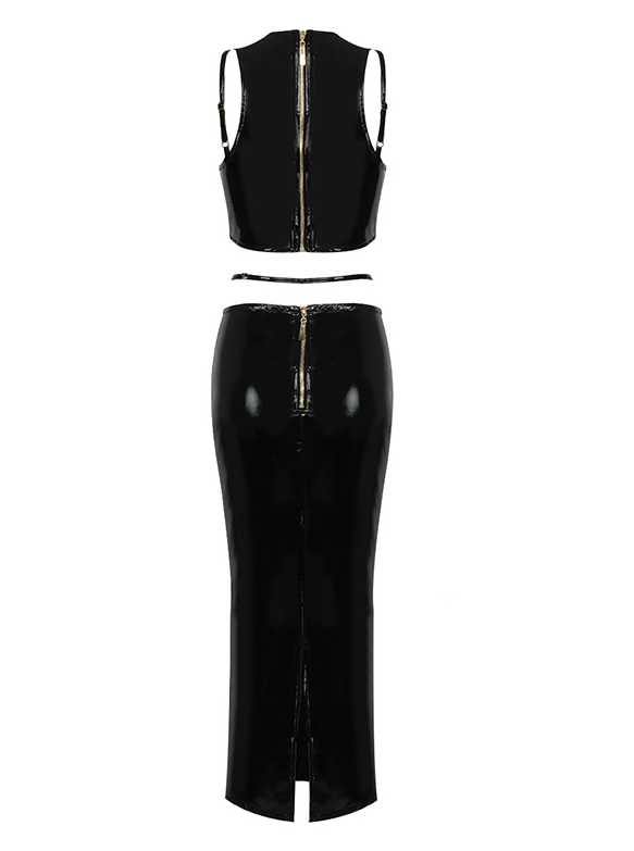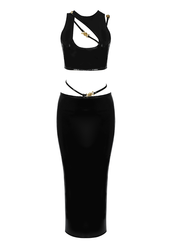 Our Jazzi set is complete with PU leather crop top and matching skirt. This style is the perfect mix of sexy and edgy. Style with heels for a fun look.
