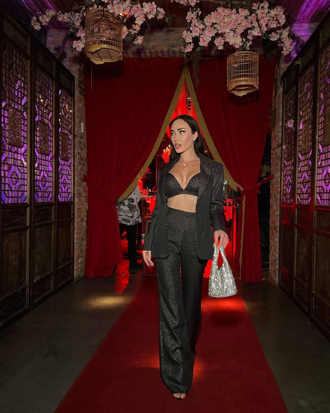 Get ready to stand out in our Jevina set. Featuring a structured blazer with straight leg matching pants in a sparkle material. Style with heels for a chic look!