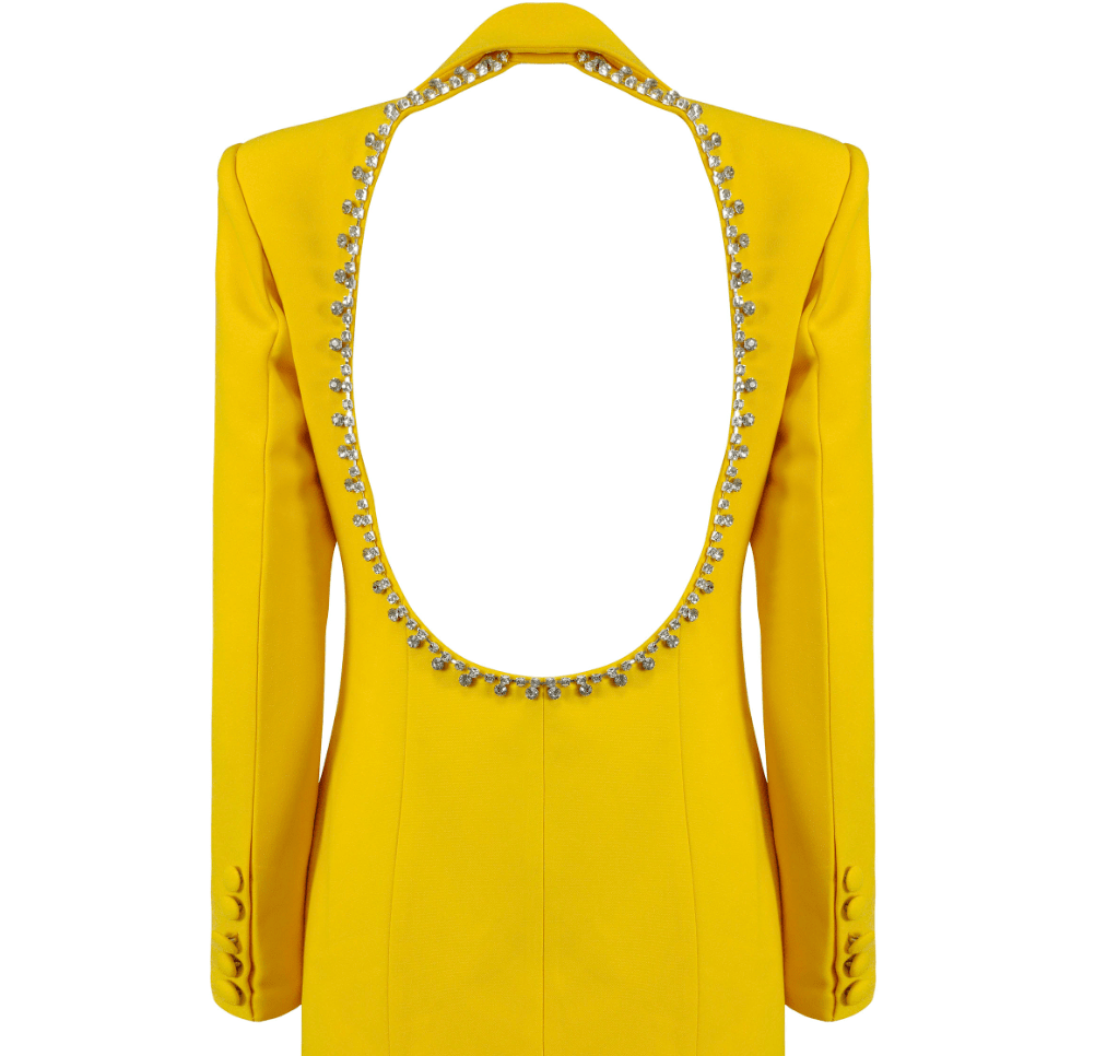 Jewel blazer dress is sure to have all eyes on you. Featuring a double breasted design, flirty mini length and crystal-embellished open back. Pairs well with strappy heels for an elevated look that will take you anywhere from parties and happy hours to date nights and occasions.