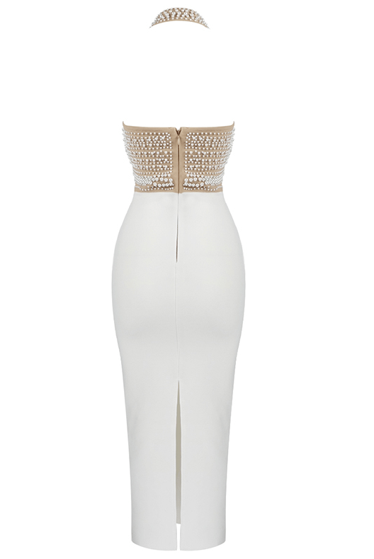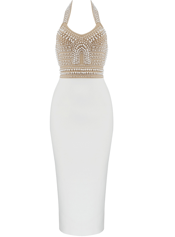 Get ready to look extra glam in our Kaylin dress! Featuring a halter neckline with beaded detail. Style with pumps and your favorite bag for a look we're loving!