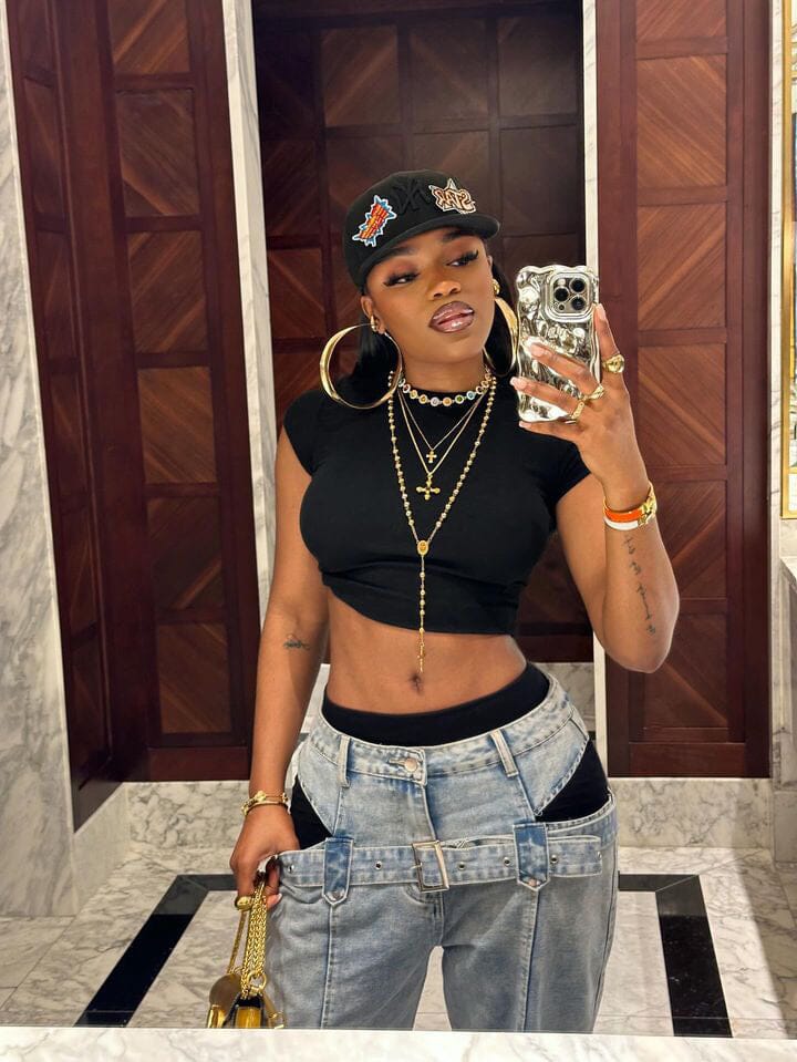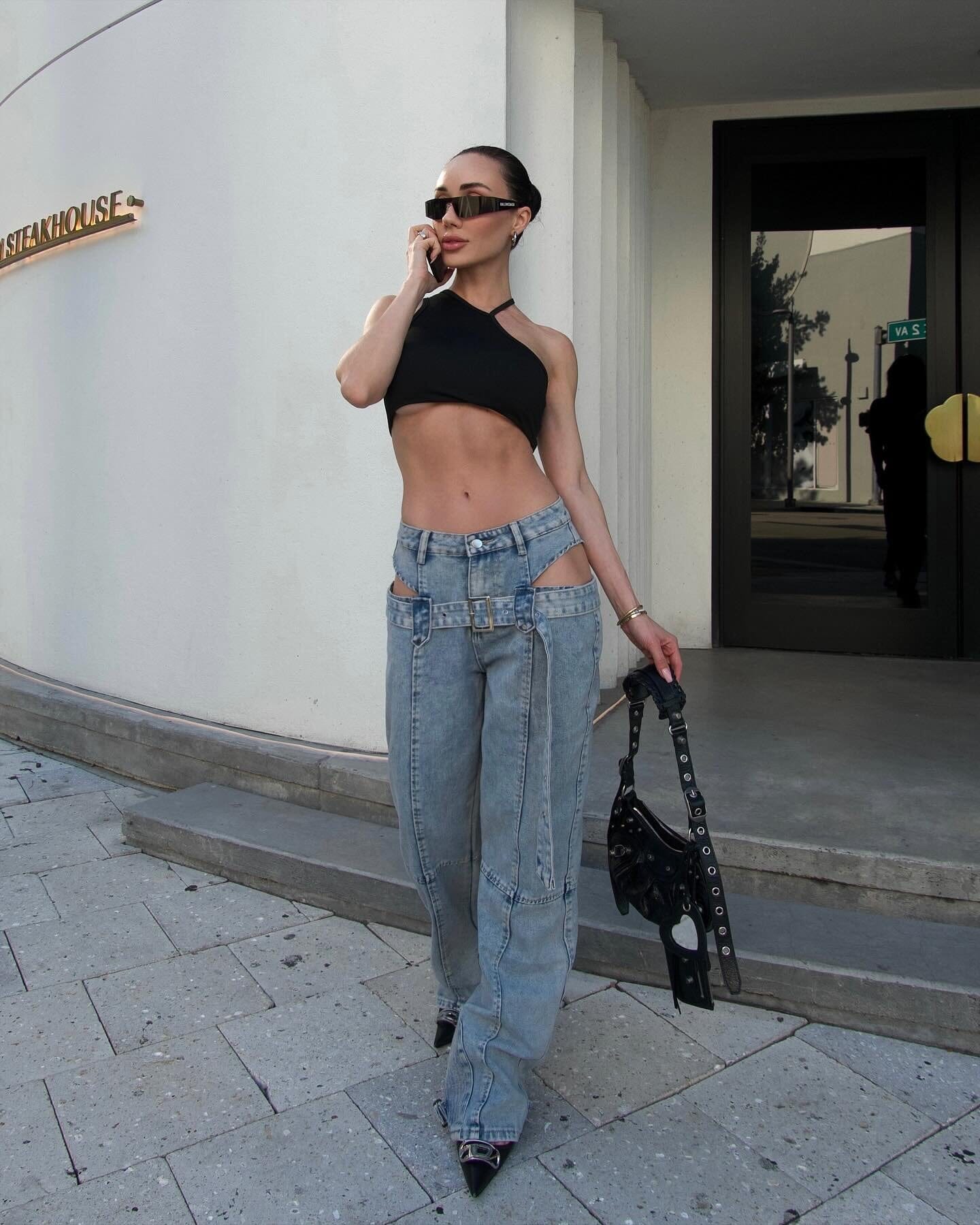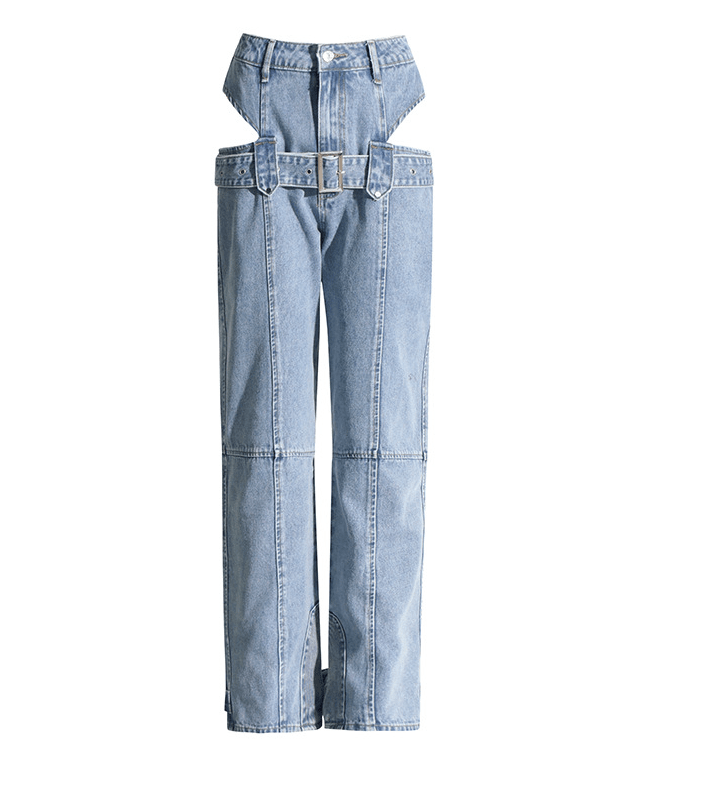 We recommend wearing with shorts or tights under the jeans to cover the side cutouts.