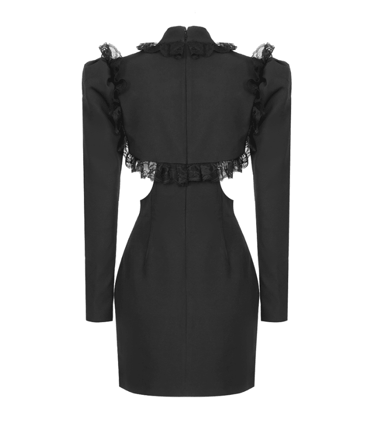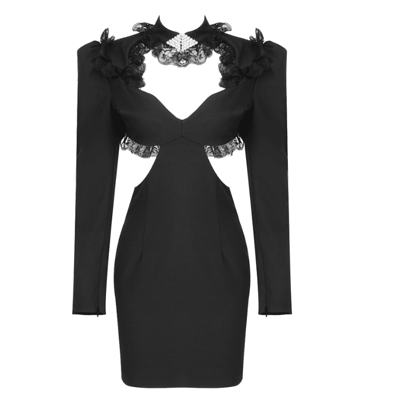Add this chic and sophisticated dress to your wardrobe! Our Lazar black mini dress features a structured fit with waist cutouts and lace detail. Style with strappy heels for a chic look!