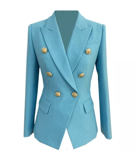 Our Lea Blazer is a must have in your wardrobe. Featuring a double breasted fit with golden buttons for extra detail. Style with your favorite pants for a chic look!