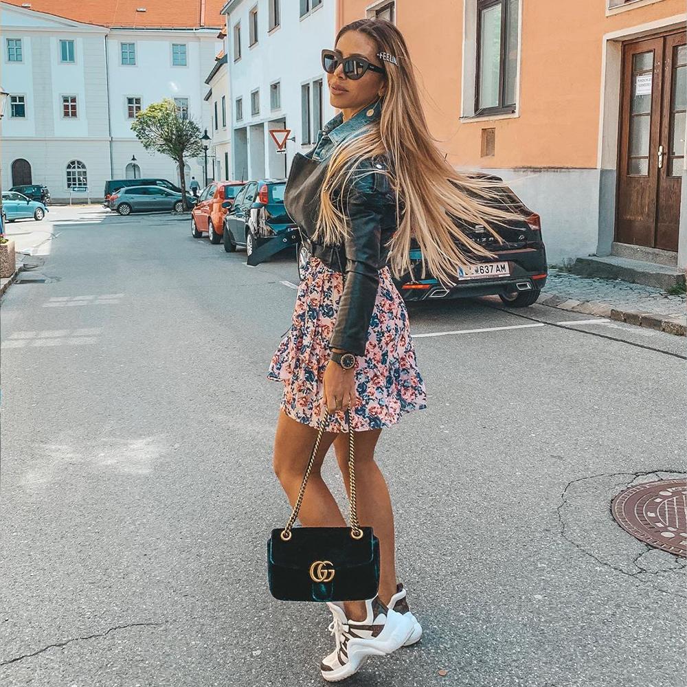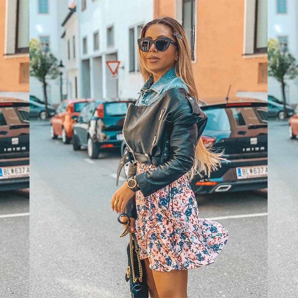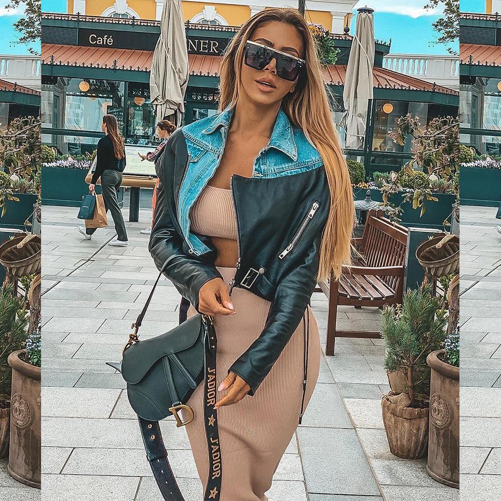 The Amari crop leather biker jacket features stunning blue denim shirt insert. Complete with buckle belt and exposed zips for a rocker look. The cropped fit makes this style more alluring and elongates the body!
