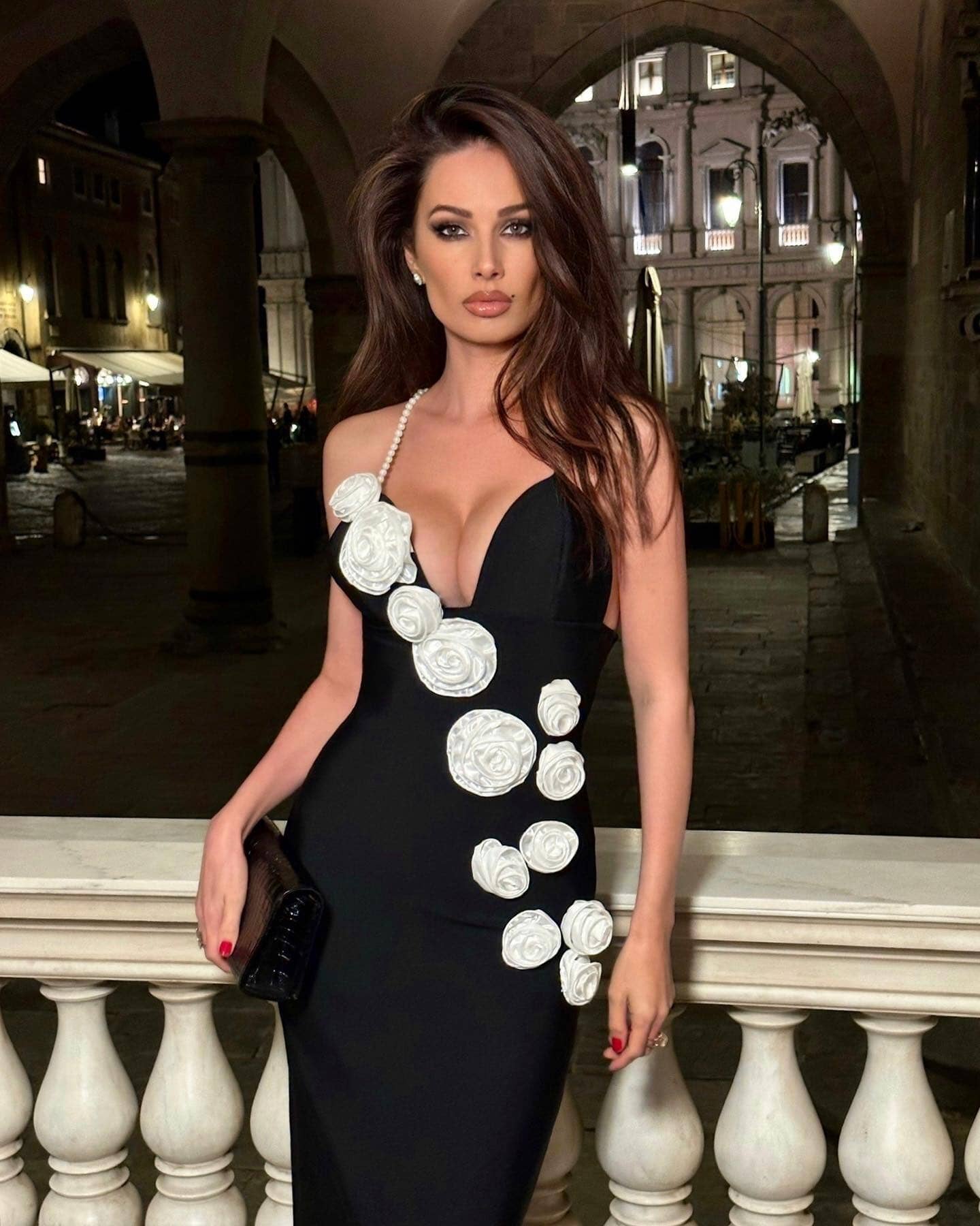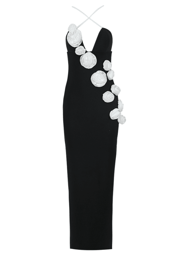 The Leslie Maxi Dress is a luxurious show-stopper that will add class and opulence to any wardrobe. Its rich black fabric is delicately draped to reveal pearlized straps and a white rose detail that will turn heads and make you stand out from the crowd. The Leslie Maxi Dress will be the perfect addition to your eveningwear collection.