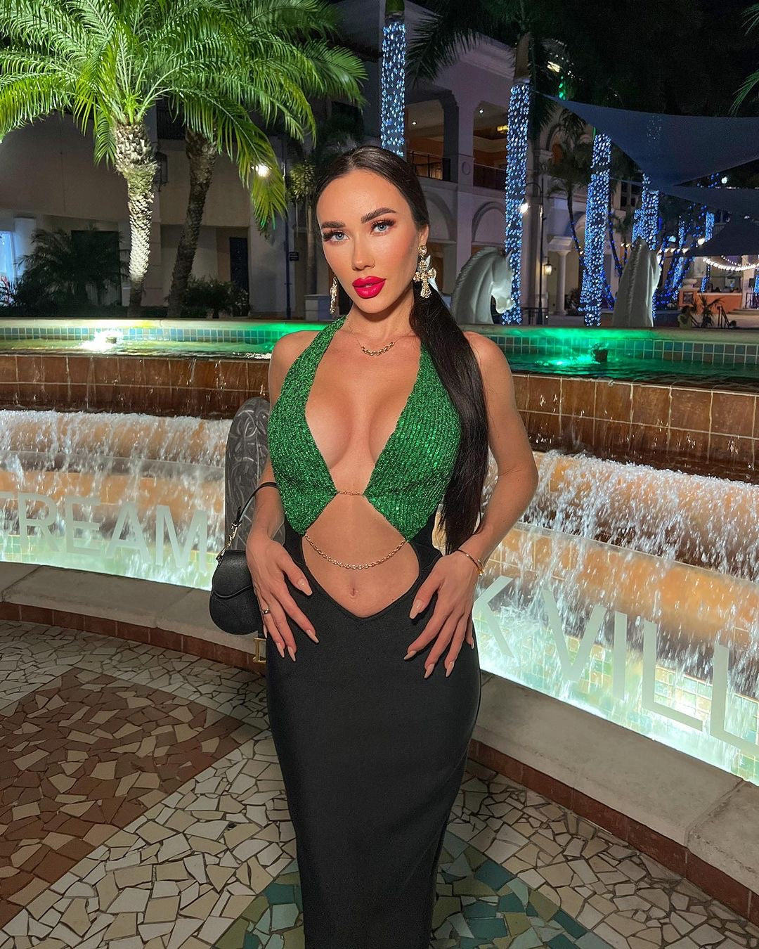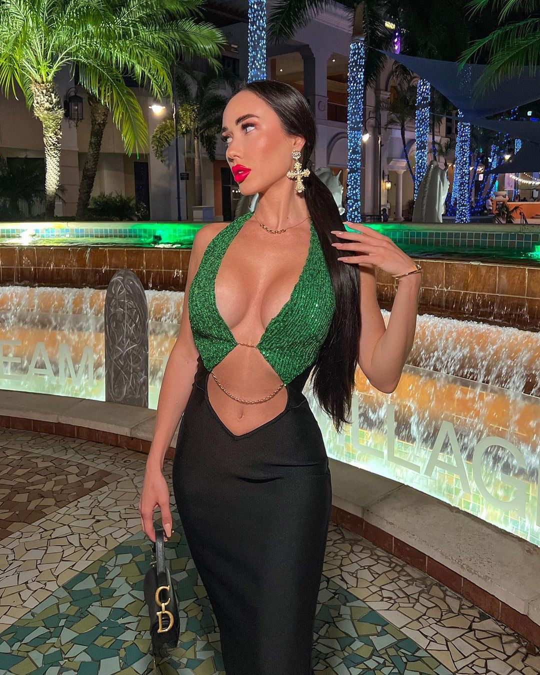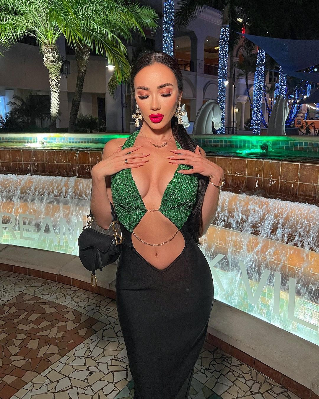 Get ready to stand out in our Lianni dress! Featuring a figure hugging fit in a beautiful green and black shade. Style with heels and a mini bag for a chic look!