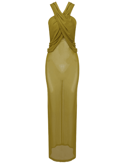 Experience elegance in this sophisticated and luxurious Liliam Maxi Dress. Crafted from sumptuous slightly sheer fabric, this timeless piece features a hood and halter neckline for an added touch of sophistication. The rich olive tone lends a decadent look that will elevate your look to the next level.