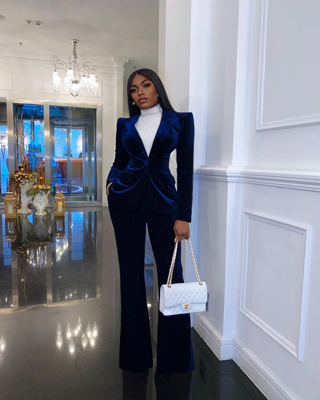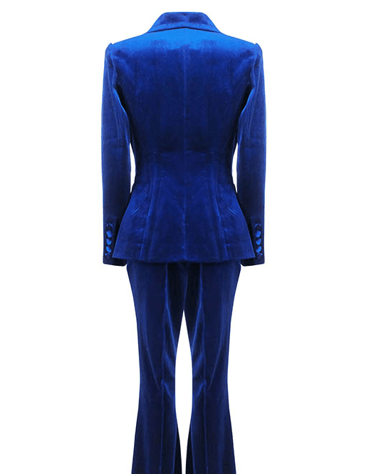 Feel fierce in our Liyan Two Piece. Featuring a classic blazer with flap pockets and a single button closure design. Paired with tailored ultra flattering flared pants. Wear it with a pointed-toe pump for your next special occasion.