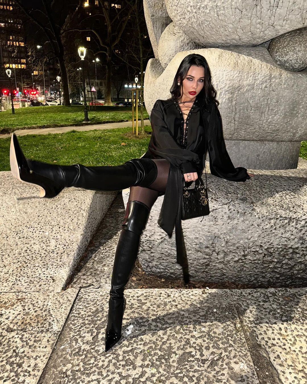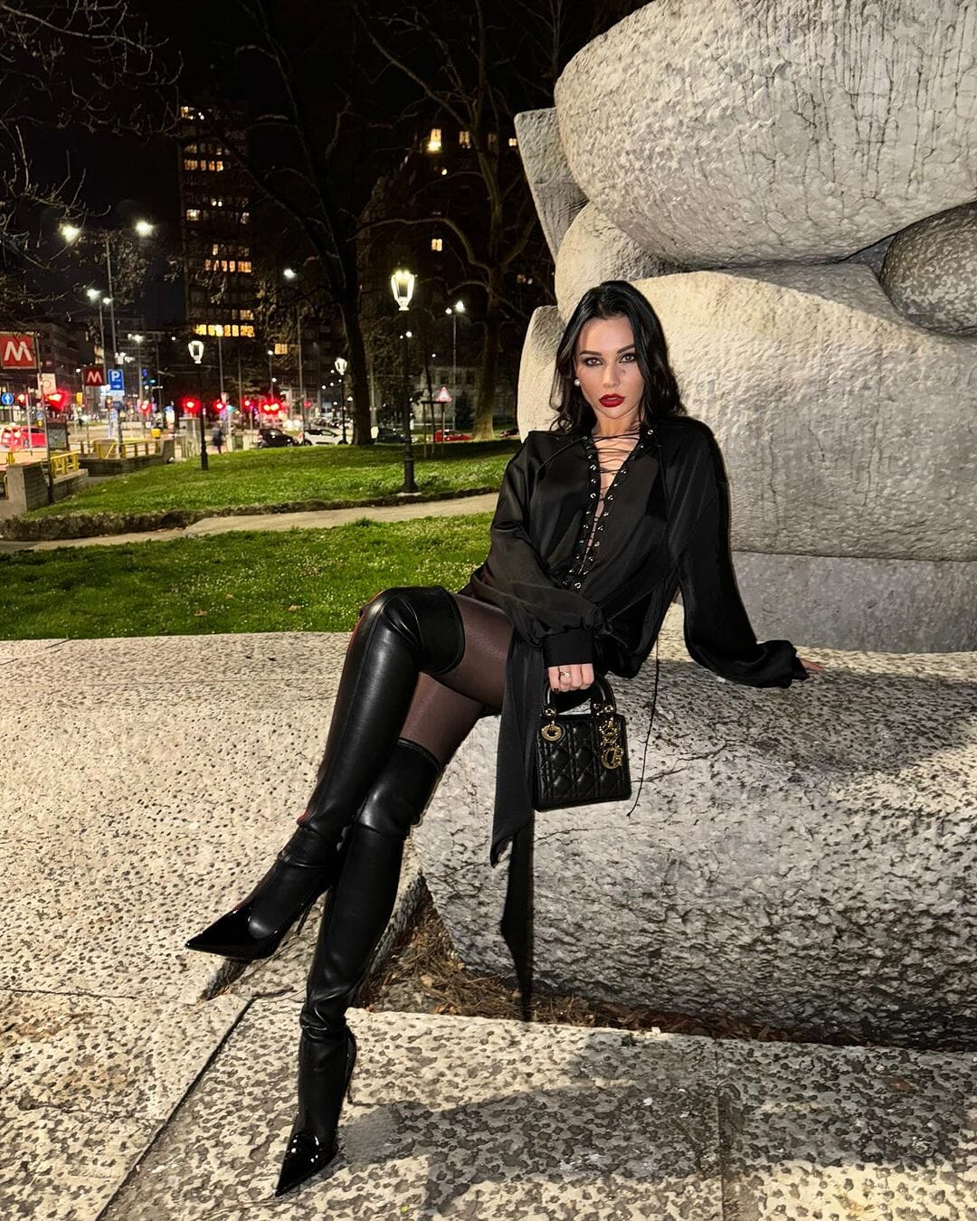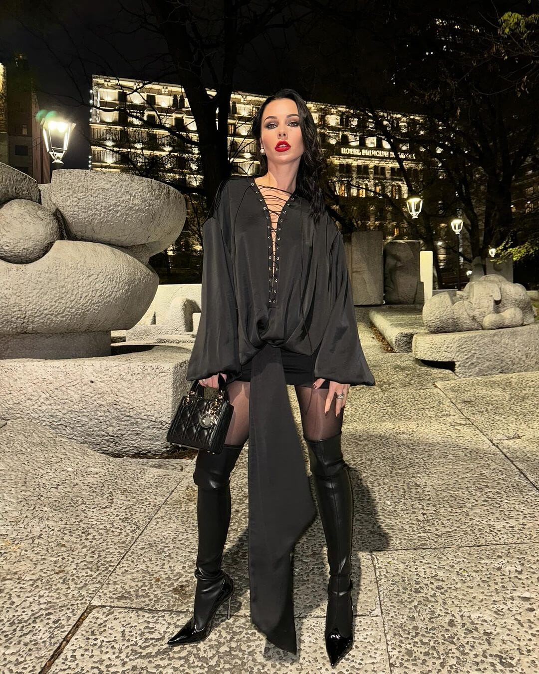Indulge in luxury with our Maia Mini Dress. Crafted from premium black fabric, this dress features full sleeves and a sensual tie up design on the bust. Exude sophistication and elegance with this exclusive piece, perfect for any special occasion.