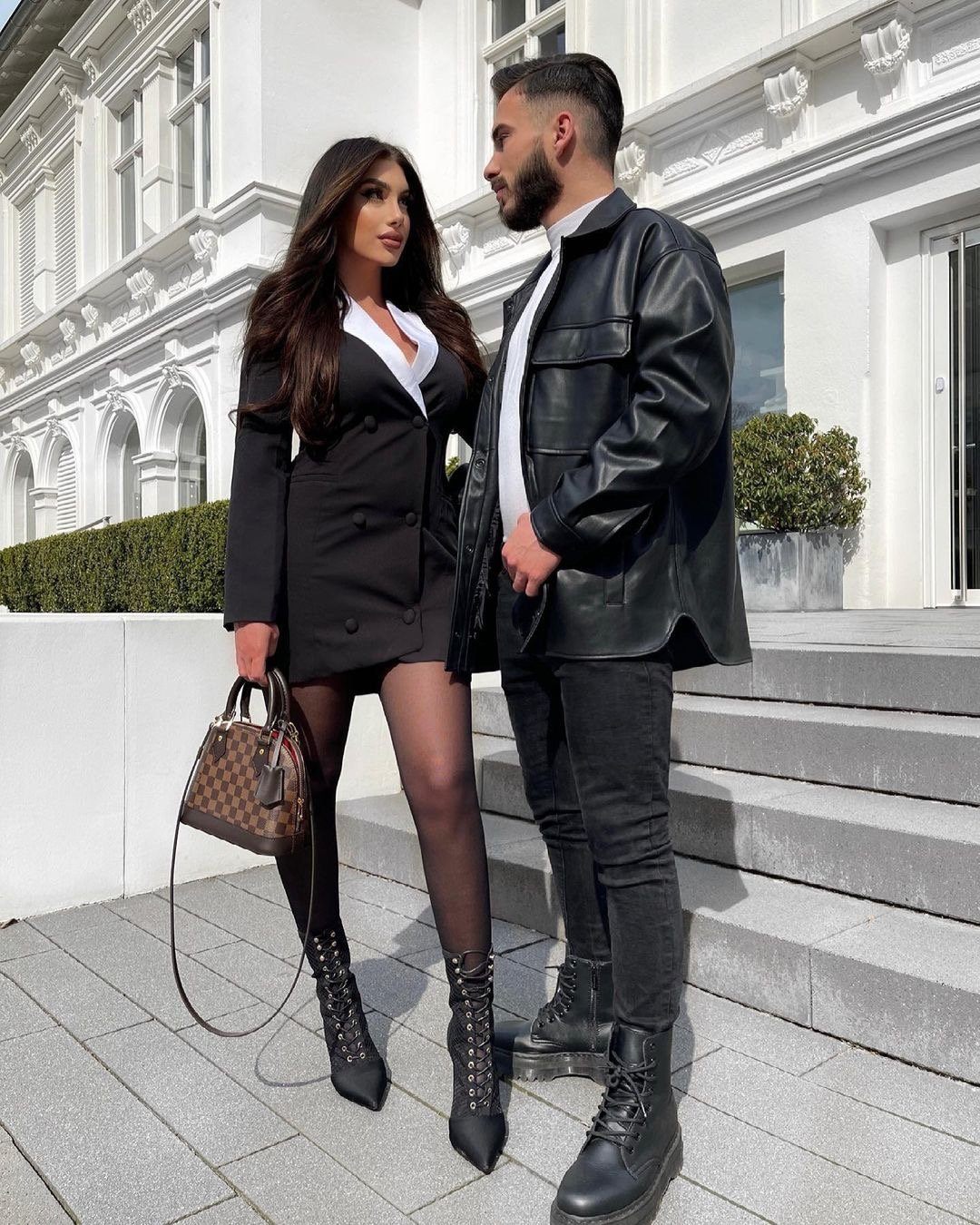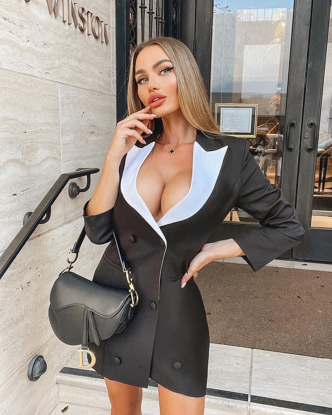 MarelisAmore is our edgy classic style black long sleeve blazer dress. Featuring a white collar and oversized buttons. Style with heels for a chic look!