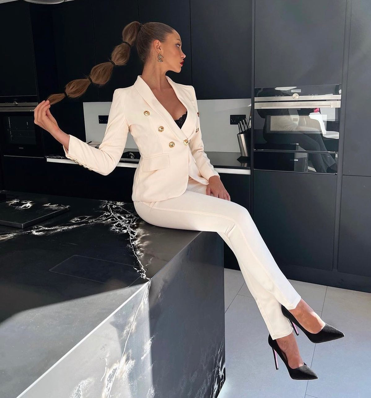 Add another boss girl look to your closet with our Marisa Two Piece Set! Featuring tailored pants and a blazer with golden buttons in a white colour. Style with heels for a look we're loving!