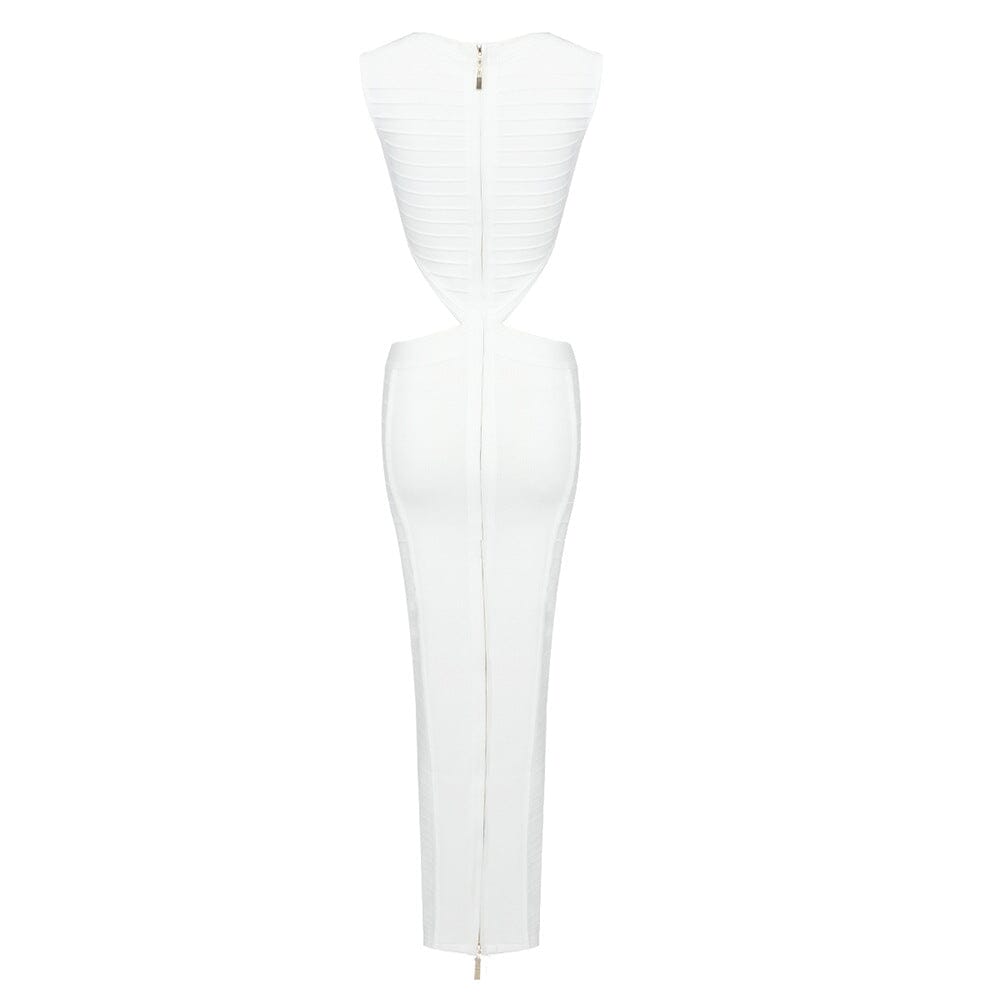Look chic in the Maritza Midi Dress for your next special occasion. This luxurious piece features a classic white hue with an open waist cutout that creates the illusion of a two-piece design. The contemporary silhouette is elegantly crafted with a fitted cropped top and matching midi skirt. Stand out in this unique and statement-making dress.