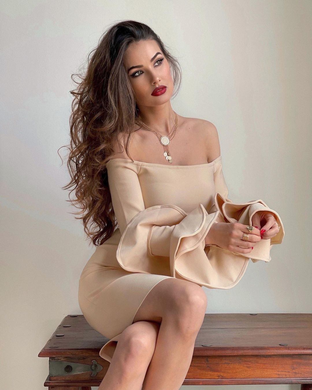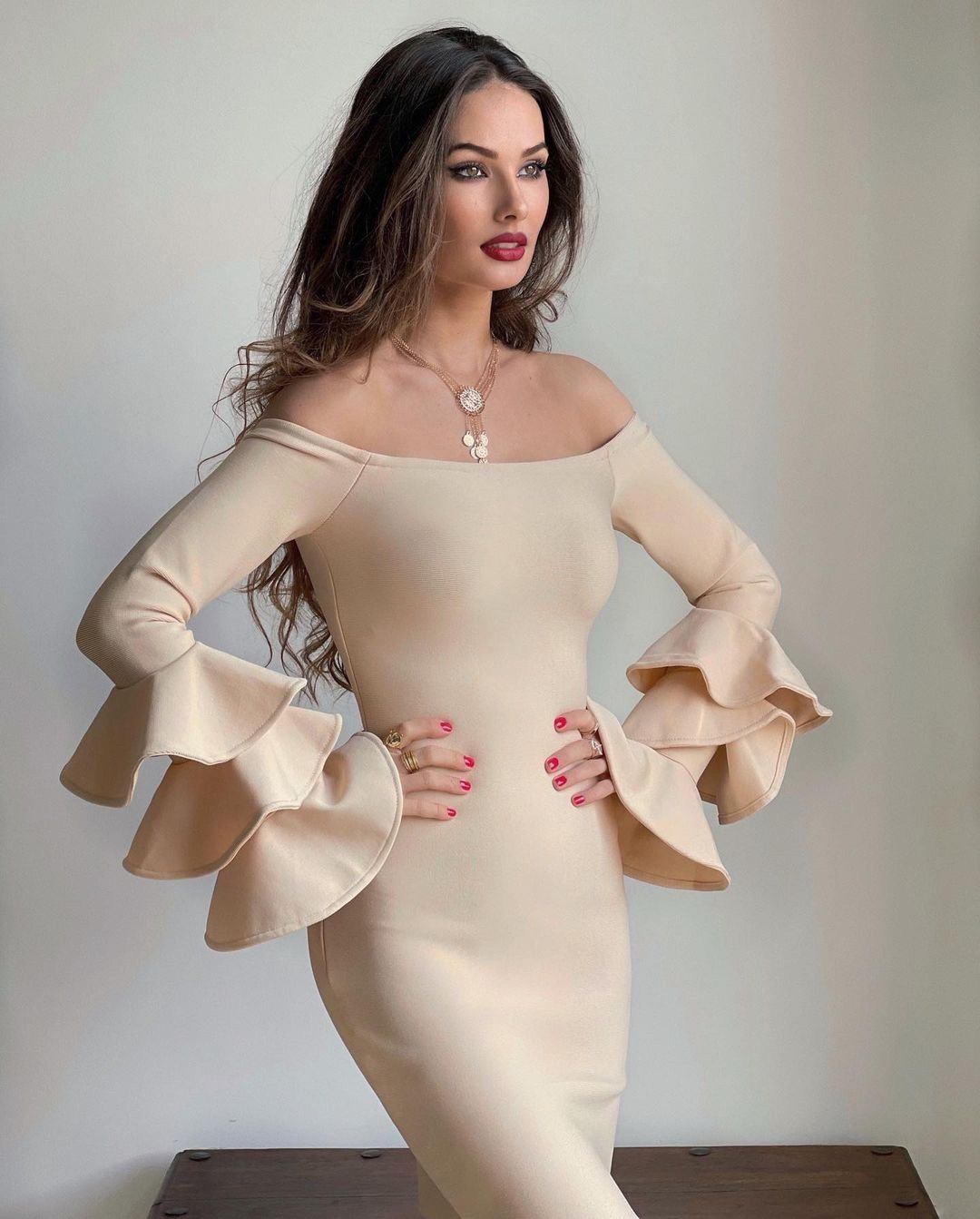 Our Masha is a bandage style with an off the shoulder design and puffed sleeves. The Masha dress comes in a beautiful nude tone that will accentuate your figure in all the right places.