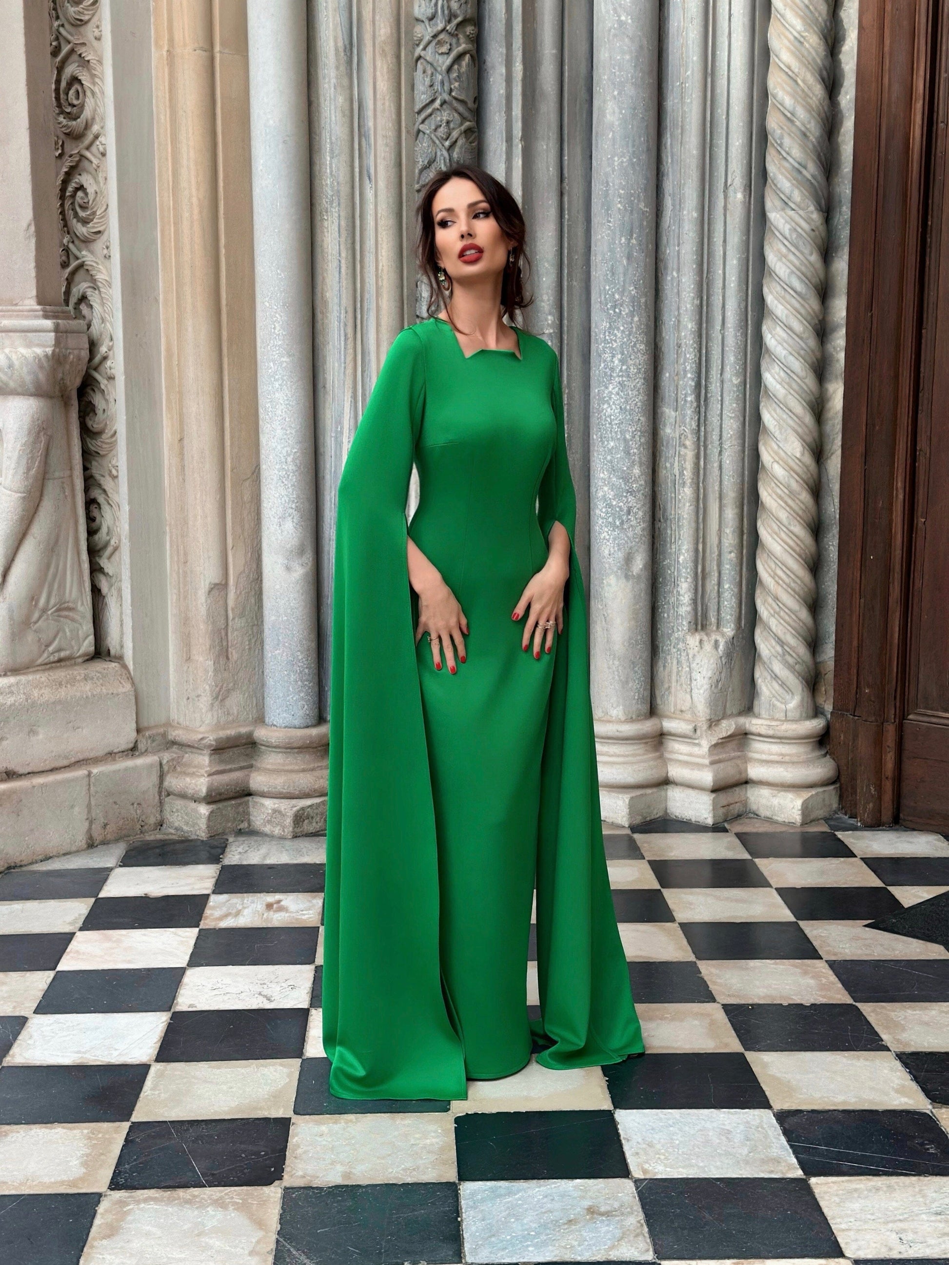 This Mayra Maxi Dress is a luxurious piece that exudes sophistication and elegance. Its lush green colour is complemented perfectly by its oversized long sleeves, creating a look that is sure to turn heads. Crafted from the finest materials, this dress is a true statement-maker.
