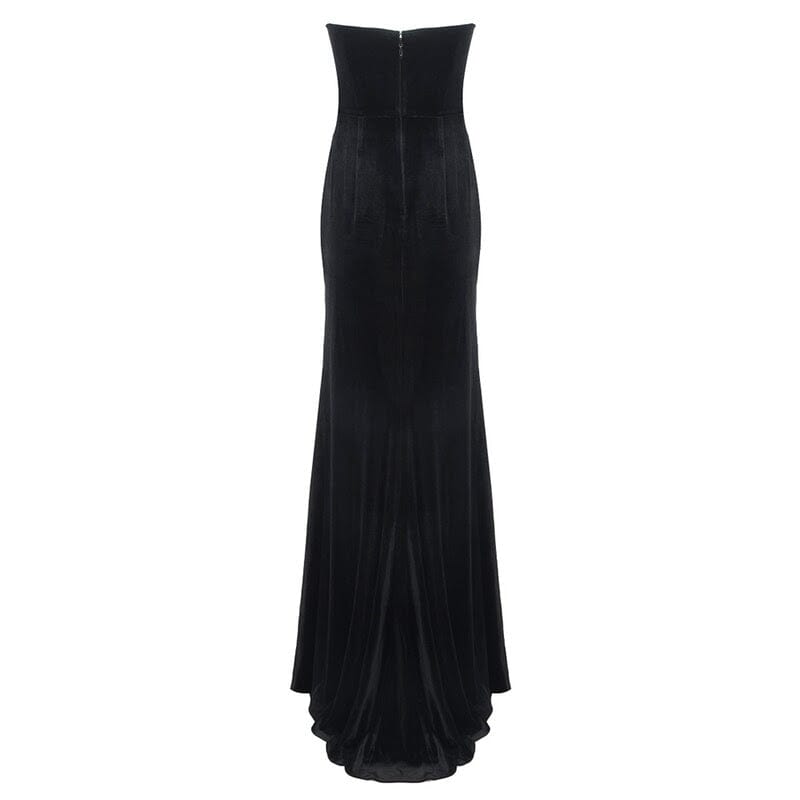 The Nanar Maxi Dress is an unforgettable evening essential. Crafted with luxurious black fabric and detailed with shimmering rhinestones, this strapless design exudes high-class sophistication. Delicately molded to hug the figure, the dress showcases an elegant corset fit and is finished off with a dramatic train that will have you standing out from the crowd.