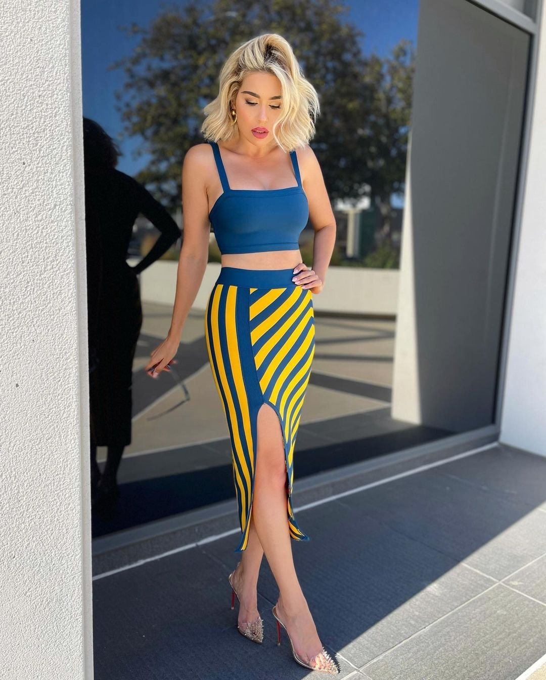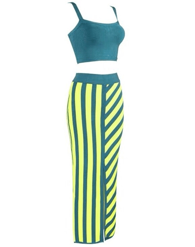 The Natia two piece set is one of our new arrivals! This elegant and stylish two piece set is perfect for any occasion. It features a crop top with matching skirt. Style with heels for a chic look!