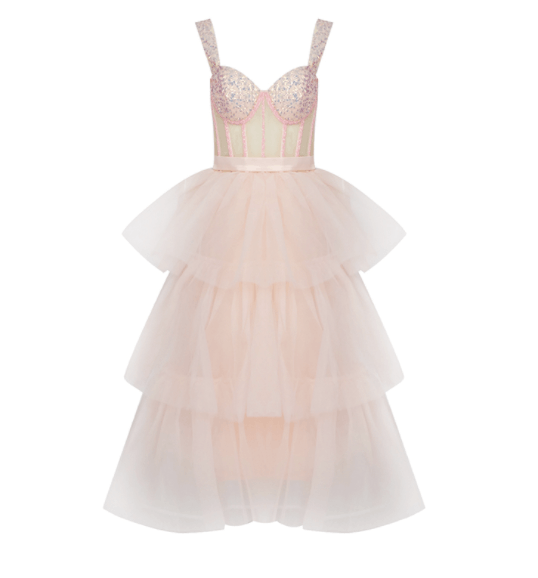 Our Nattie dress is super flattering! Featuring thing straps with puffed tulle material for the perfect fit. Style with heels for a look we're loving!