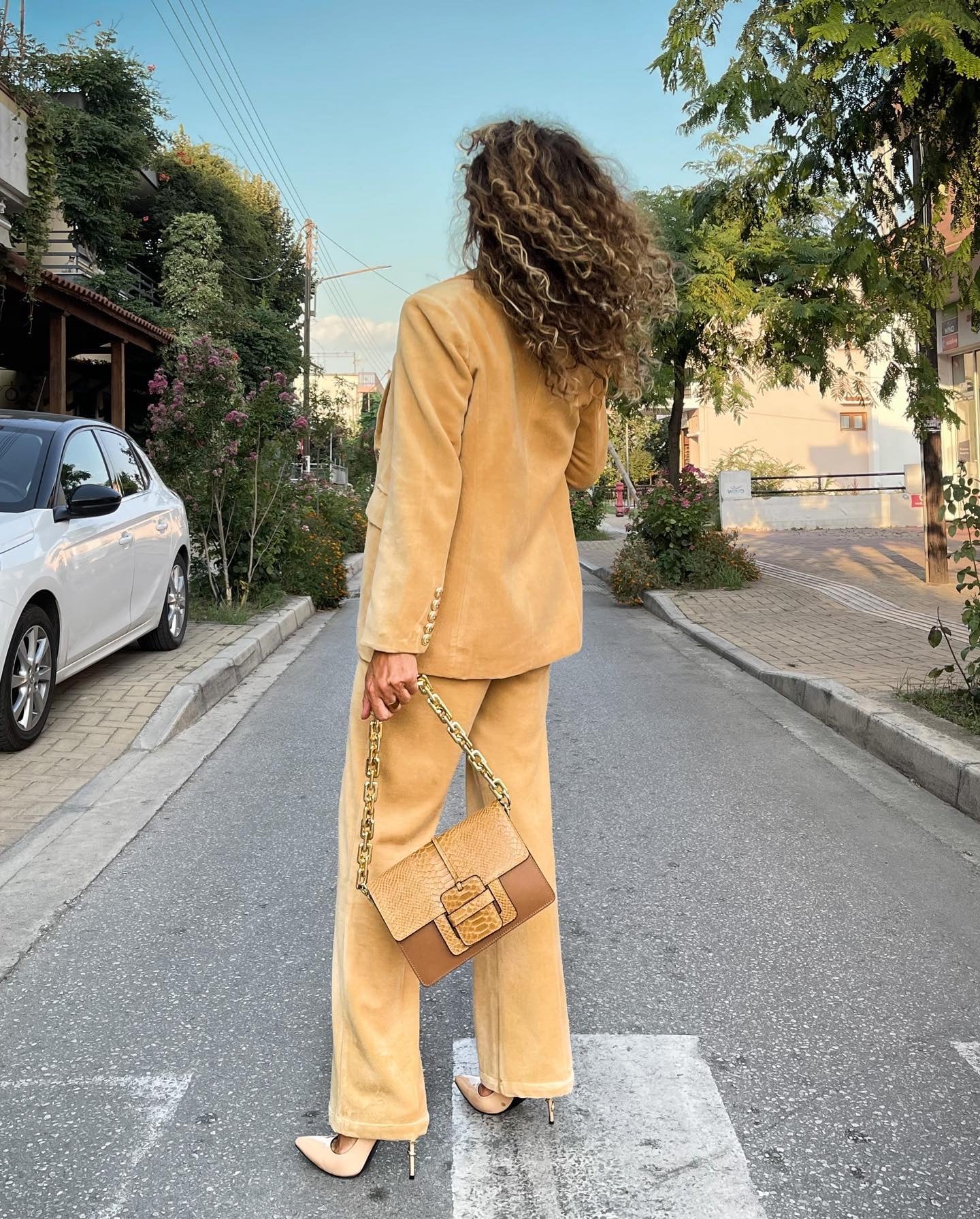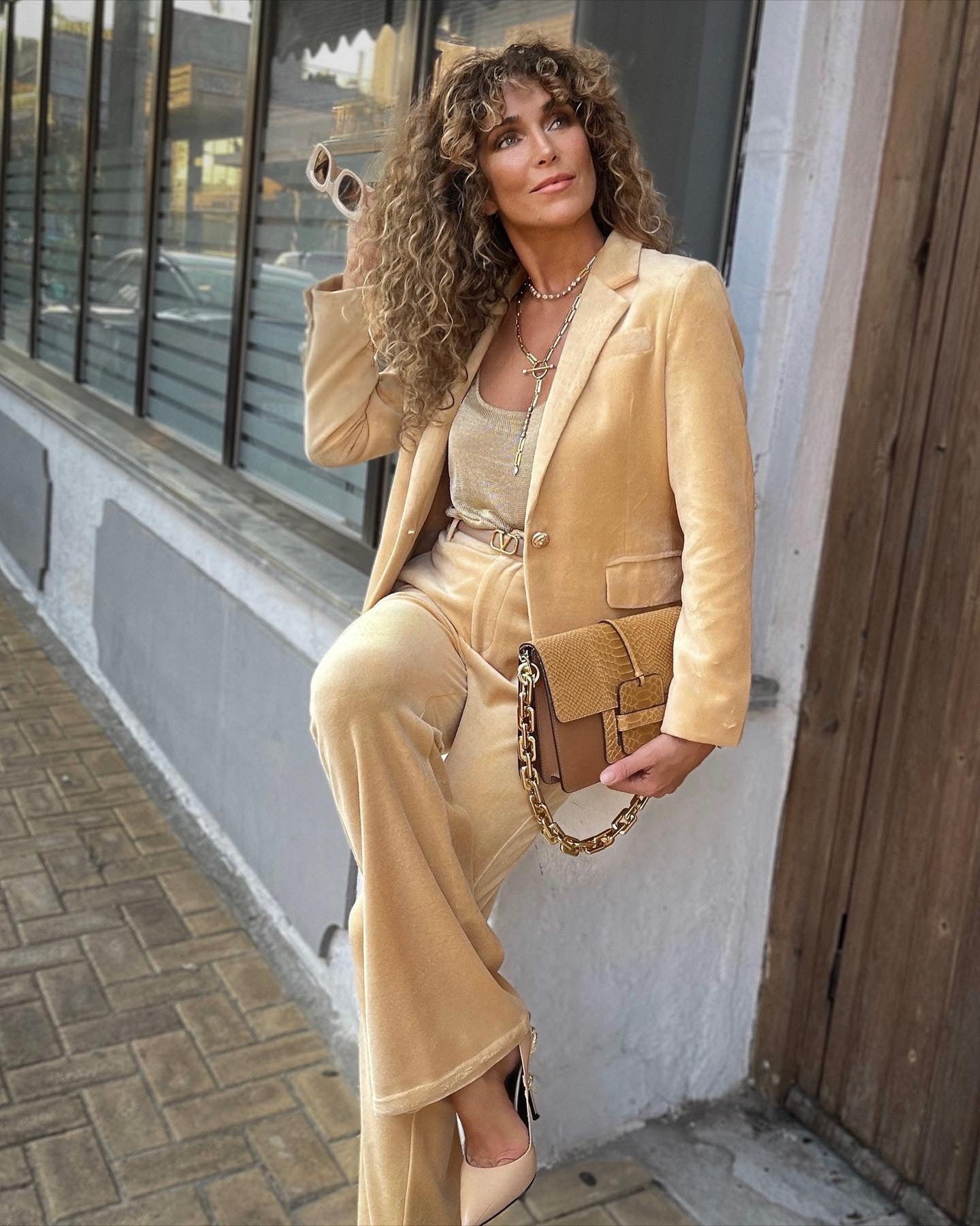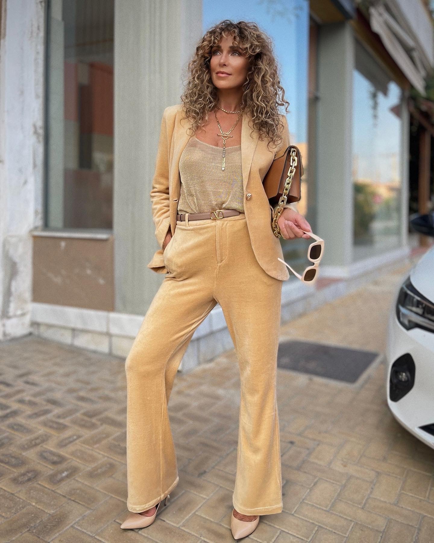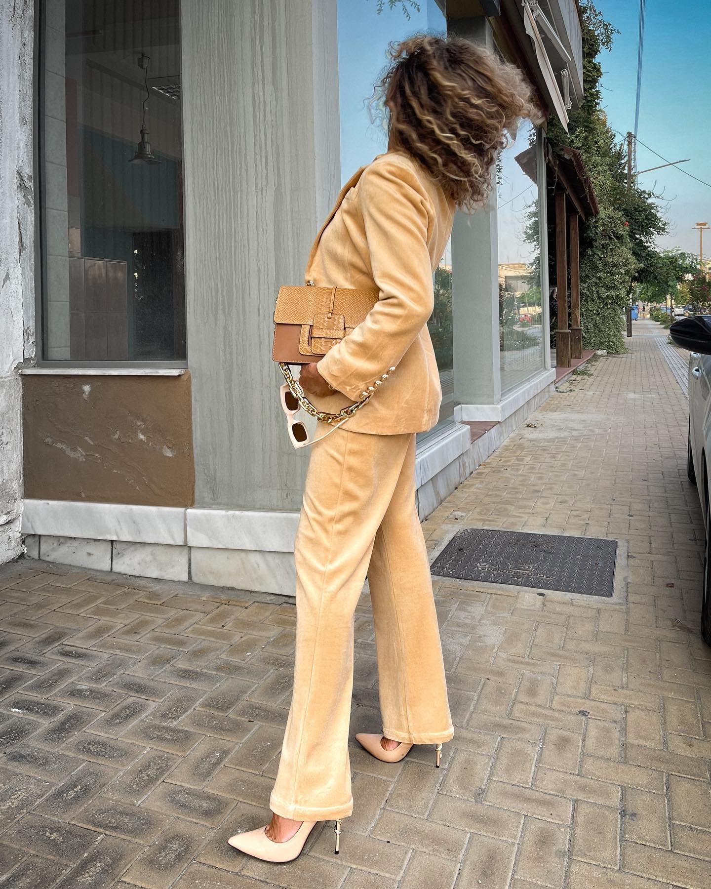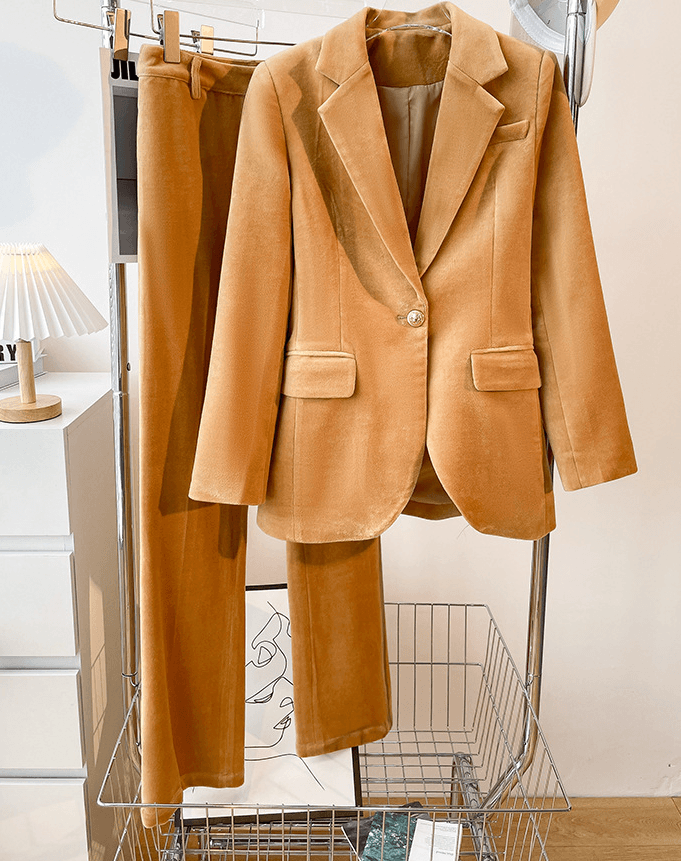 The Nookie set is a velvet, slim fit style featuring a velvet fabric. Style with your favorite accessories for a chic look.