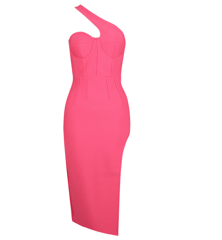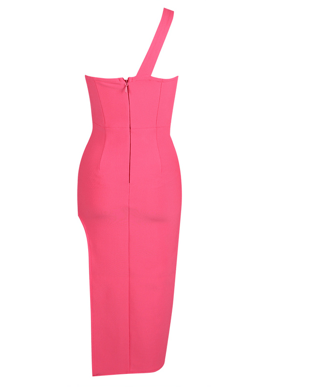 Our Olena Dress has a single sleeve and an open leg in a romantic full-length design. is constructed from bandage fabric. Style with heels for a chic look!