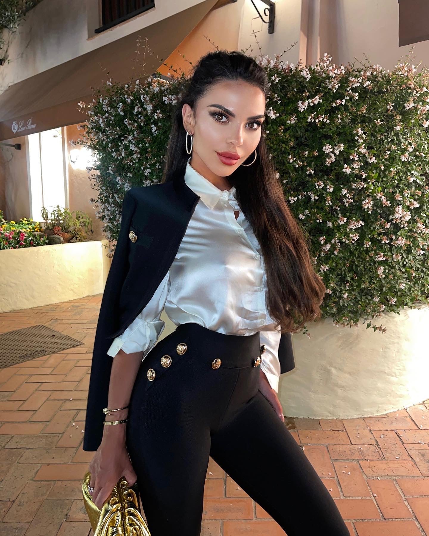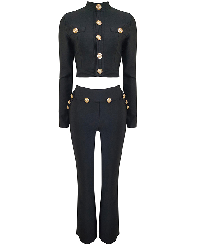 We are obsessing over our Oneta two piece set! featuring a matching top and pants with gold buttons for an edgy look. Style with boots and statement accessories for a look we're loving!