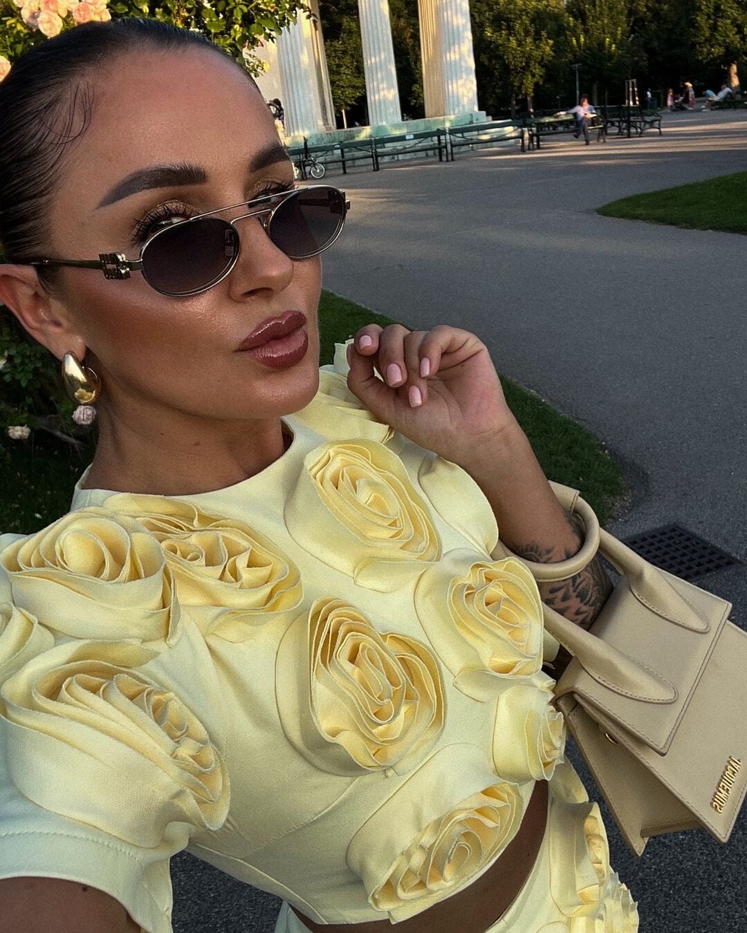 Indulge in our Rachelle Two Piece Set, a luxurious yellow ensemble featuring a cropped top and mini skirt adorned with delicate mini roses. Elevate your wardrobe with this exclusive set, perfect for any occasion. Experience the sophistication and elegance of high-end fashion with this must-have addition to your collection.