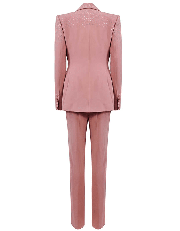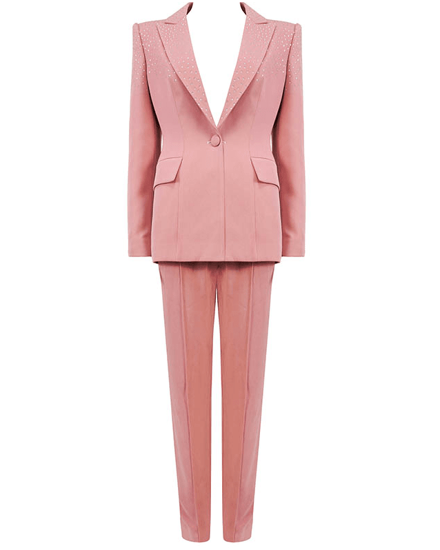 The Razuna set is a slim fit style featuring rhinestone details. Featuring a fitted blazer and matching pants, Style with your favorite accessories for a chic look.