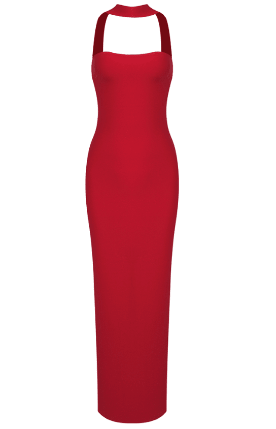 Indulge in luxury with our Rossa Maxi Dress. This stunning red dress features a provocative slit on the back and is elevated by a high neckline band, creating a sophisticated and exclusive look. Perfect for any occasion, this dress offers both style and comfort.