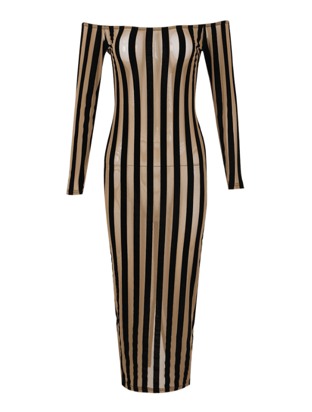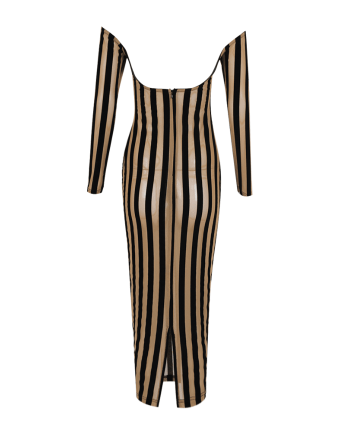 Indulge in the ultimate fashion statement with our Roza Midi Dress. This exquisite piece boasts a striking striped pattern and an elegant off the shoulder design. Perfect for any occasion, our dress will make you feel luxurious and stylish while exuding an air of exclusivity. Don't compromise on style, choose the Roza Maxi Dress and elevate your wardrobe.