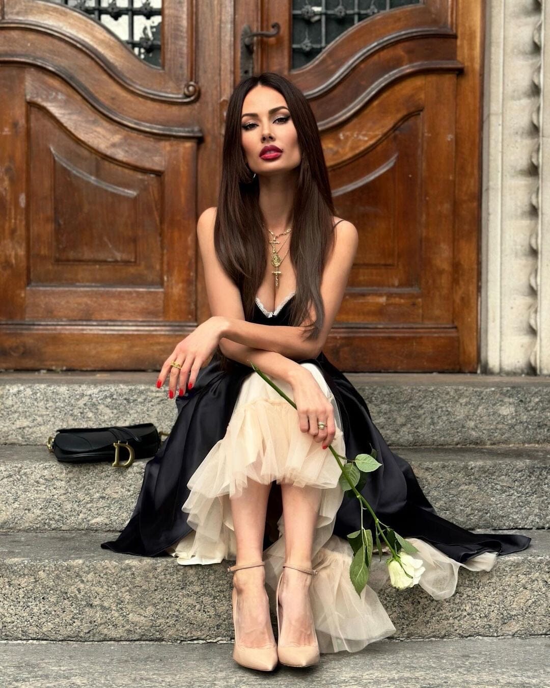 Indulge in luxury with our Saski Midi Dress. This black midi dress features a tulle bottom for added fluff and volume, creating an elegant and exclusive look. Perfect for any occasion. Elevate your style with this sophisticated piece.