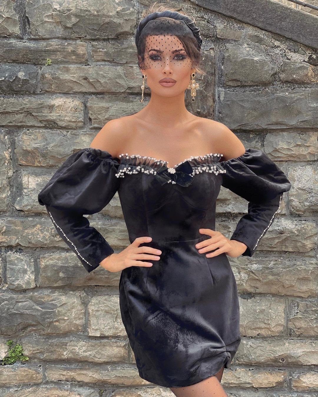 Our Selene Dress is a must have! featuring an off-the-shoulder neckline and a sexy velvet fabric. Style with heels and a mini bag for a look we're loving!