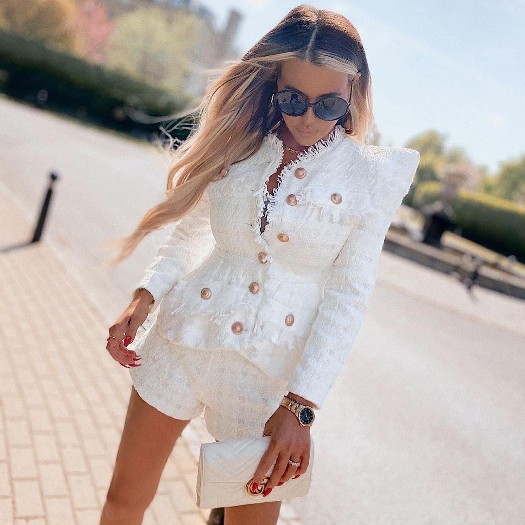 The Selina two piece set is one of our new arrivals! This elegant and stylish two piece set is perfect for any occasion. It features gold button accents and can be worn buttoned up or layered with a top for a casual look.